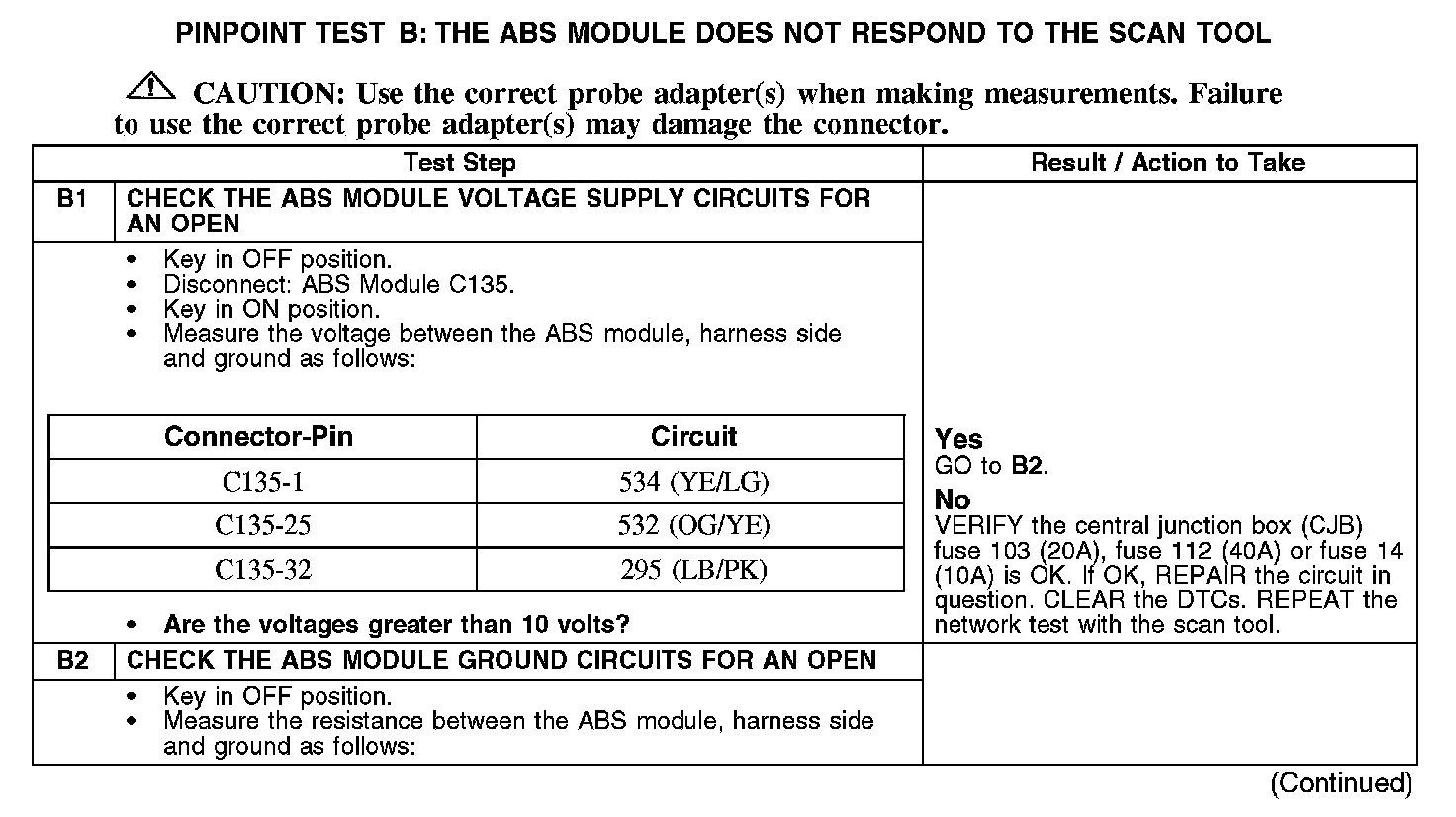 PINPOINT TEST B: THE ABS MODULE DOES NOT RESPOND TO THE SCAN TOOL