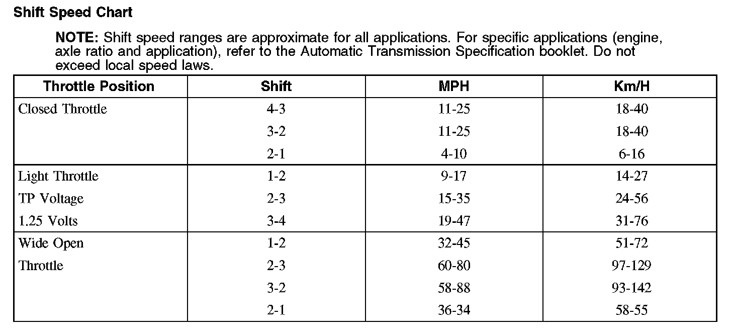 Shift Speed Chart
