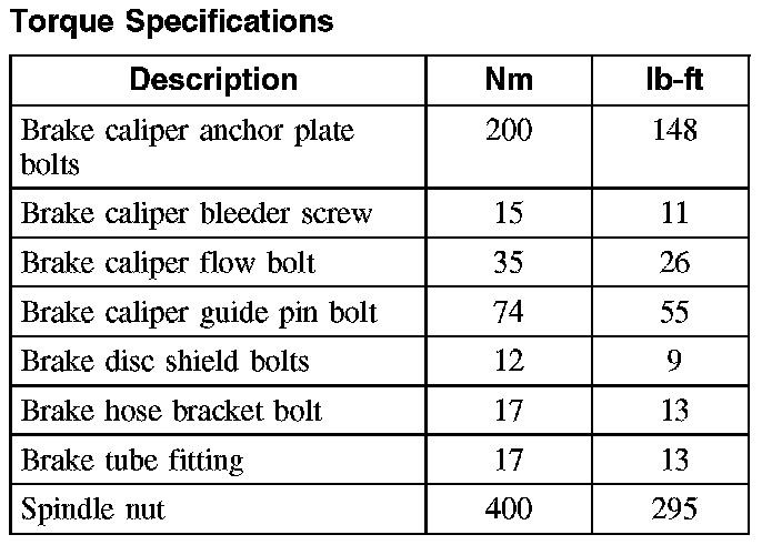 Torque Specifications, Front