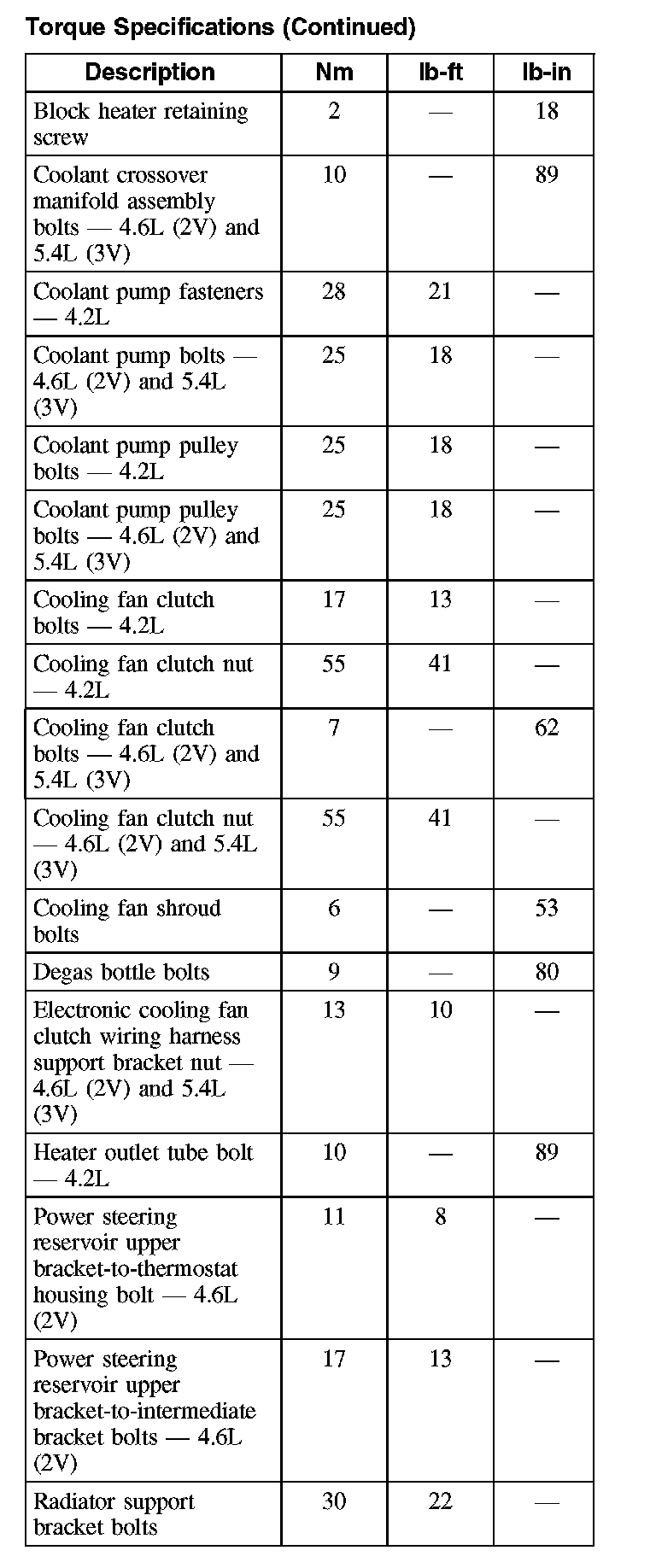 Torque Specifications (Part 4):