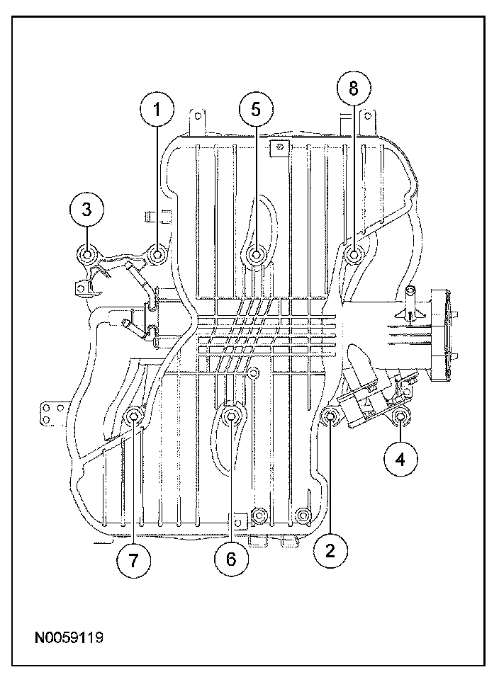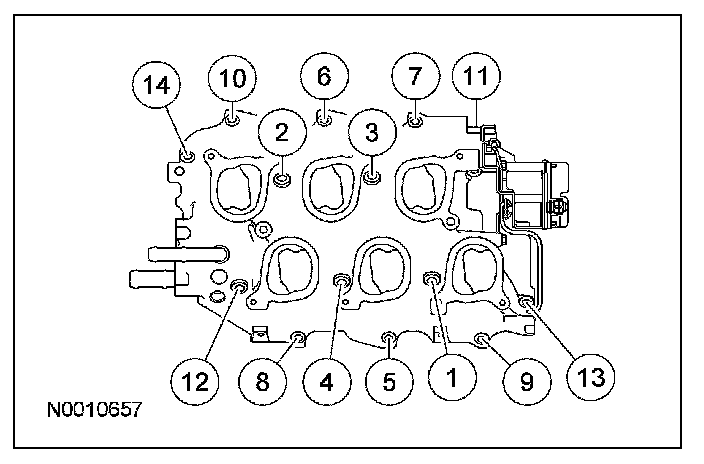NOTE: Make sure the bolts are installed in the correct locations. The long bolts are installed in positions 1, 2, 3, 4, 11 and 12.