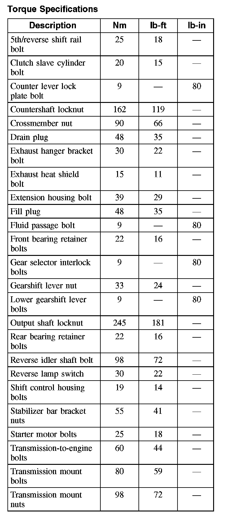 Torque Specifications