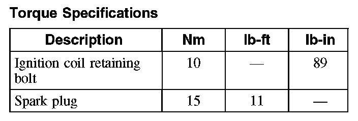 Torque Specifications: