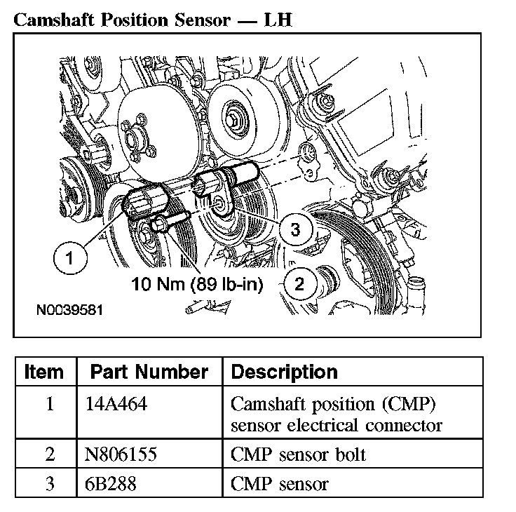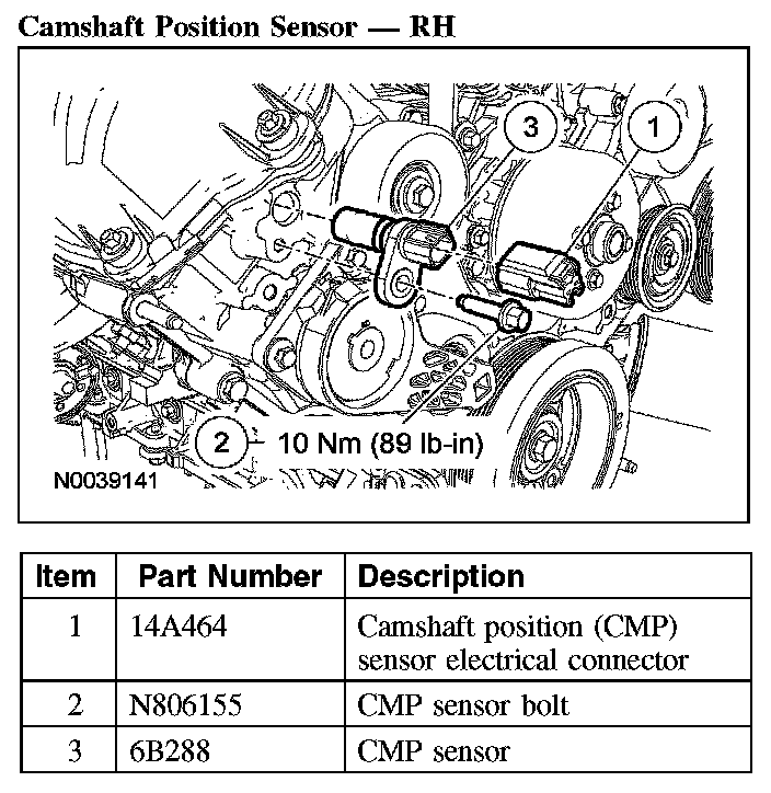- Lubricate the CMP sensor O-ring seal with clean engine oil prior to installation.