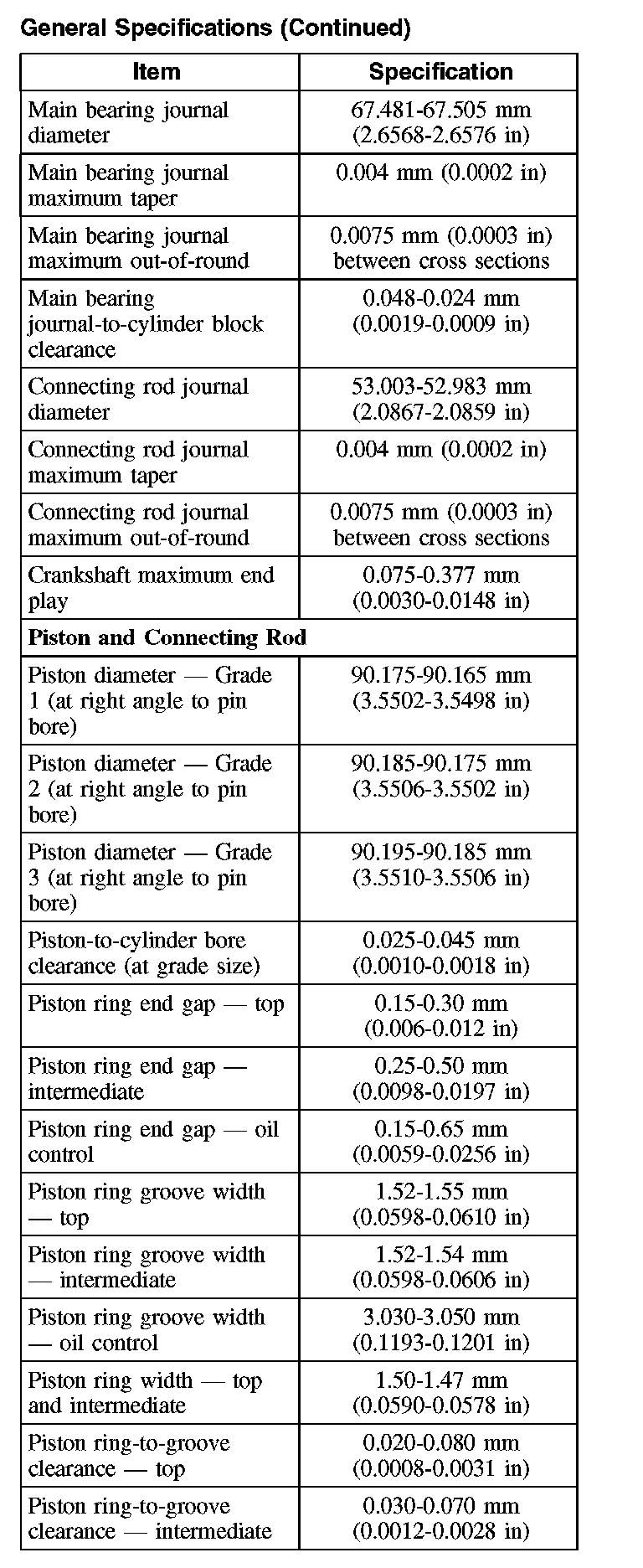 General Specifications (Part 2):