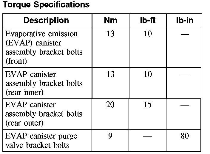 Evaporative Emissions System: Specifications