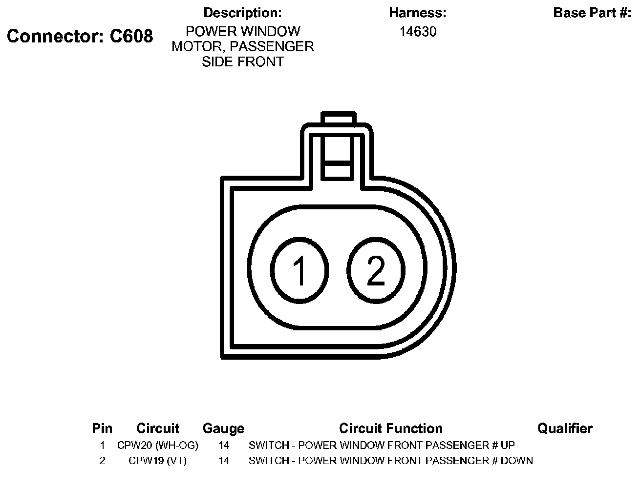 Power Window Motor, Passenger Side Front
