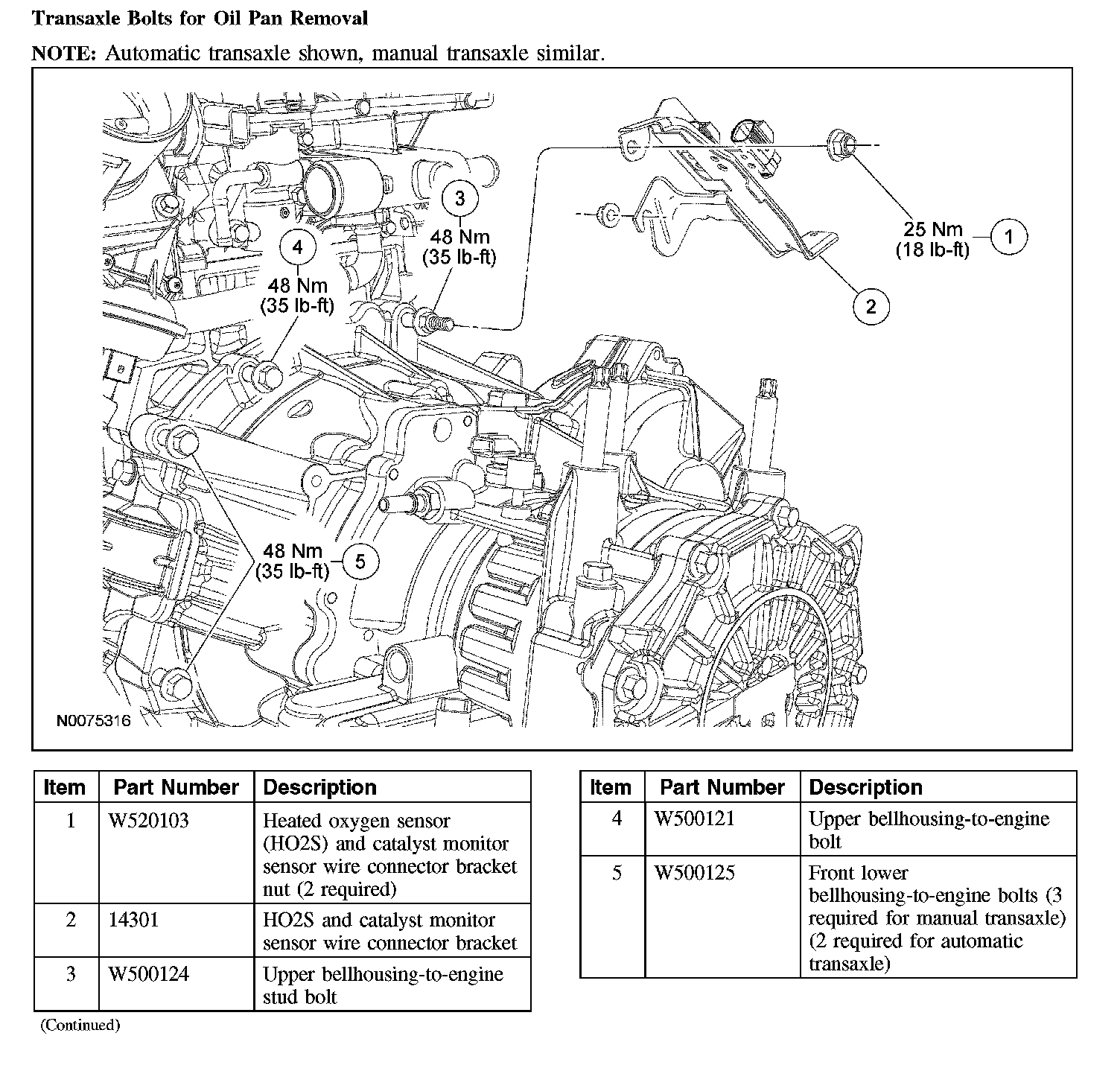 Transaxle Bolts for Oil Pan Removal: