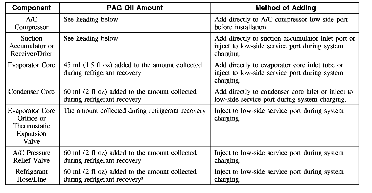 - This refrigerant oil adding method is to be used when a new A/C compressor only has been installed. If a new suction accumulator or receiver drier and evaporator core orifice or thermostatic expansion valve (TXV) have also been installed due to system contamination, refer to the appropriate heading.
