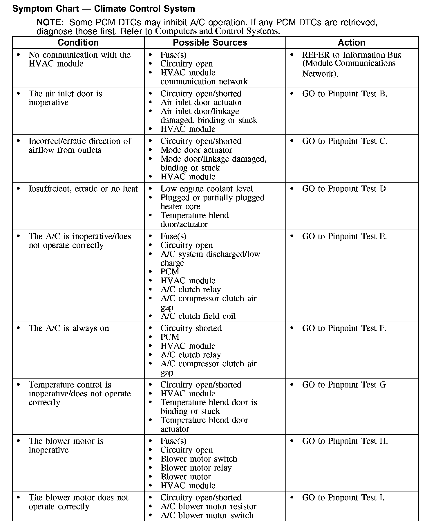 Symptom Chart - Climate Control System