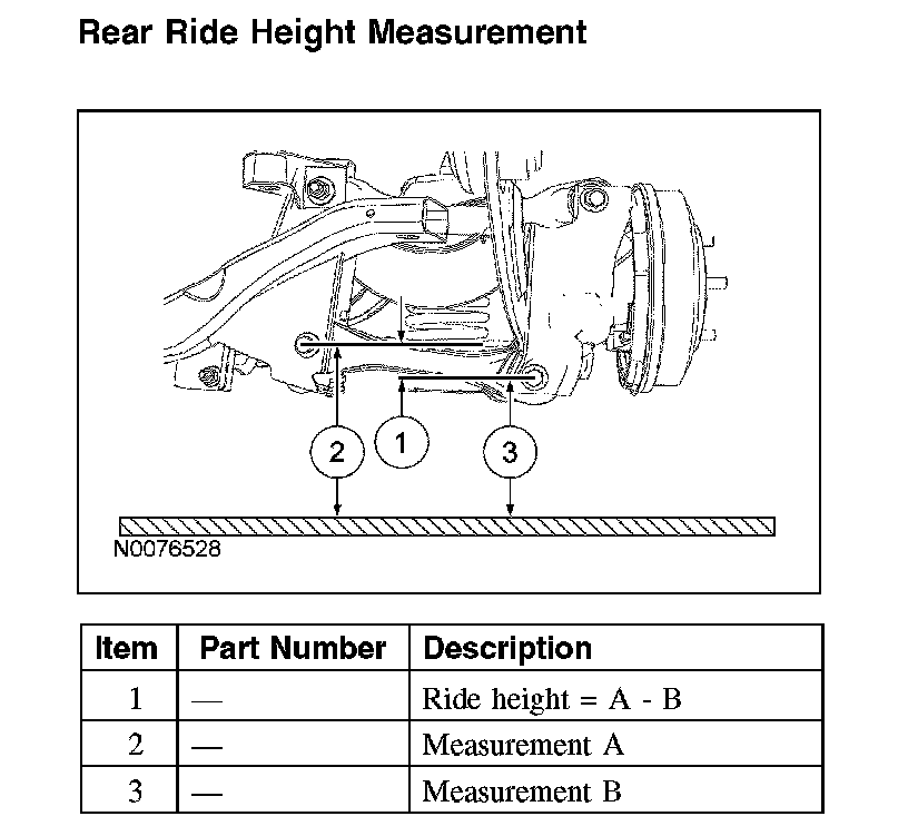 3. Subtract measurement B from measurement A to obtain the rear ride height.