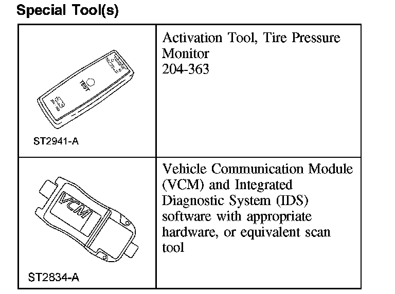 Tire Pressure Monitoring System (TPMS) Sensor TrainingSpecial Tool(s)