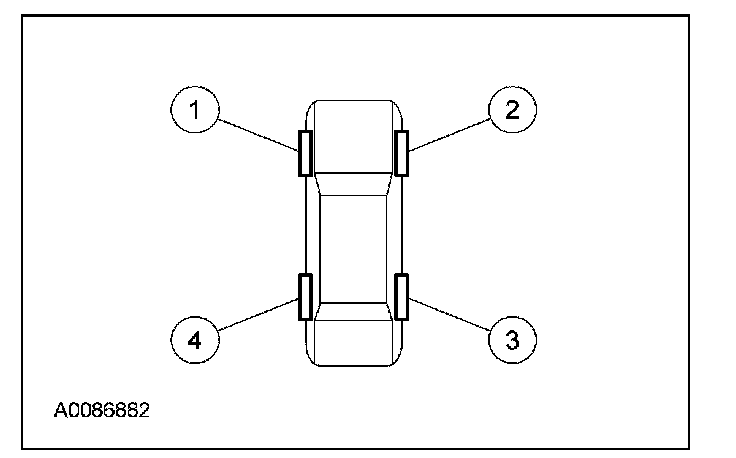 NOTE: The tire pressure sensor training procedure must be done on a single vehicle, in an area without radio frequency noise and at least 1 m (3 ft) away from other vehicles equipped with a tire pressure monitoring system (TPMS).