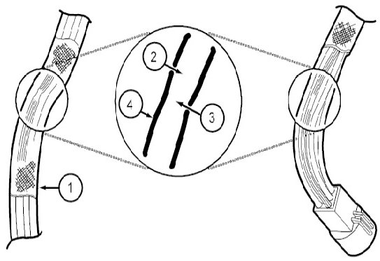 13. Use shielded heat gun to heat the repaired area until adhesive flows out of both ends of the heat shrink tubing.