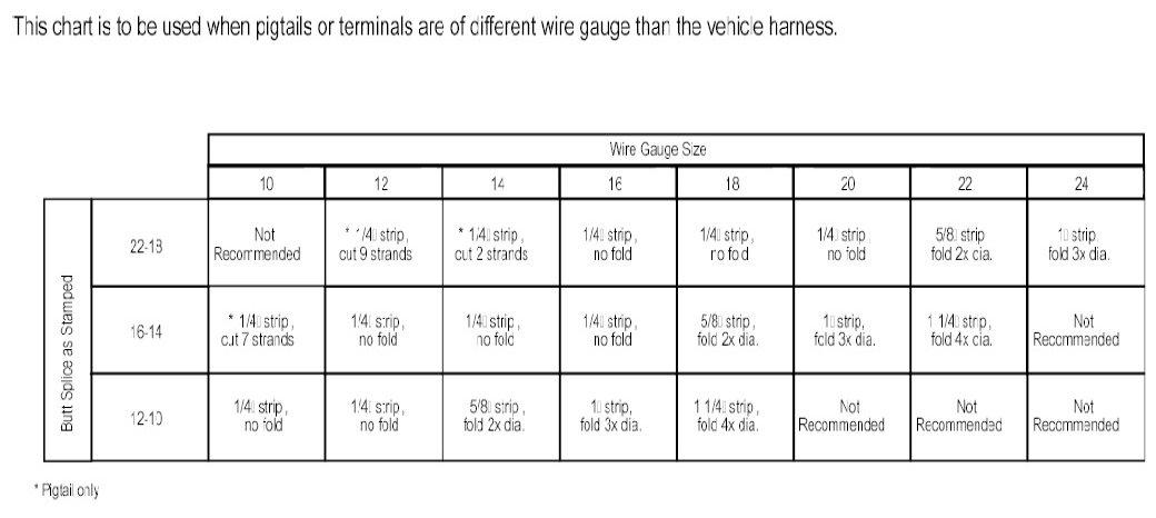 The given chart is to be used when pigtails or terminals are different wire gauge than the vehicle harness.