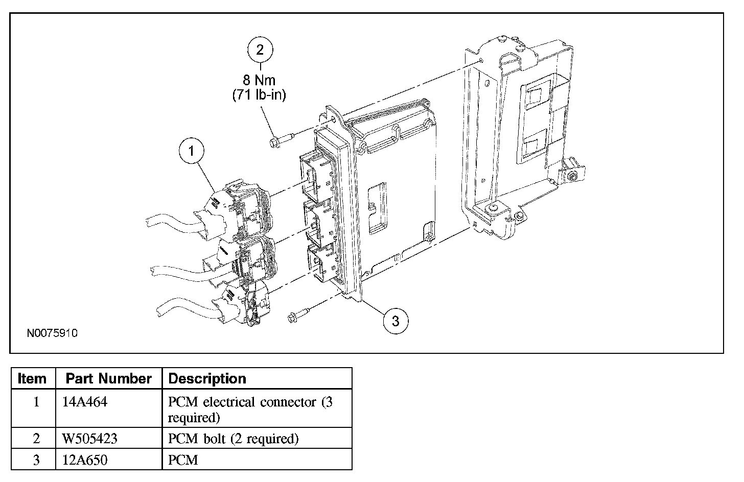 1. Install the PCM and the 2 bolts.