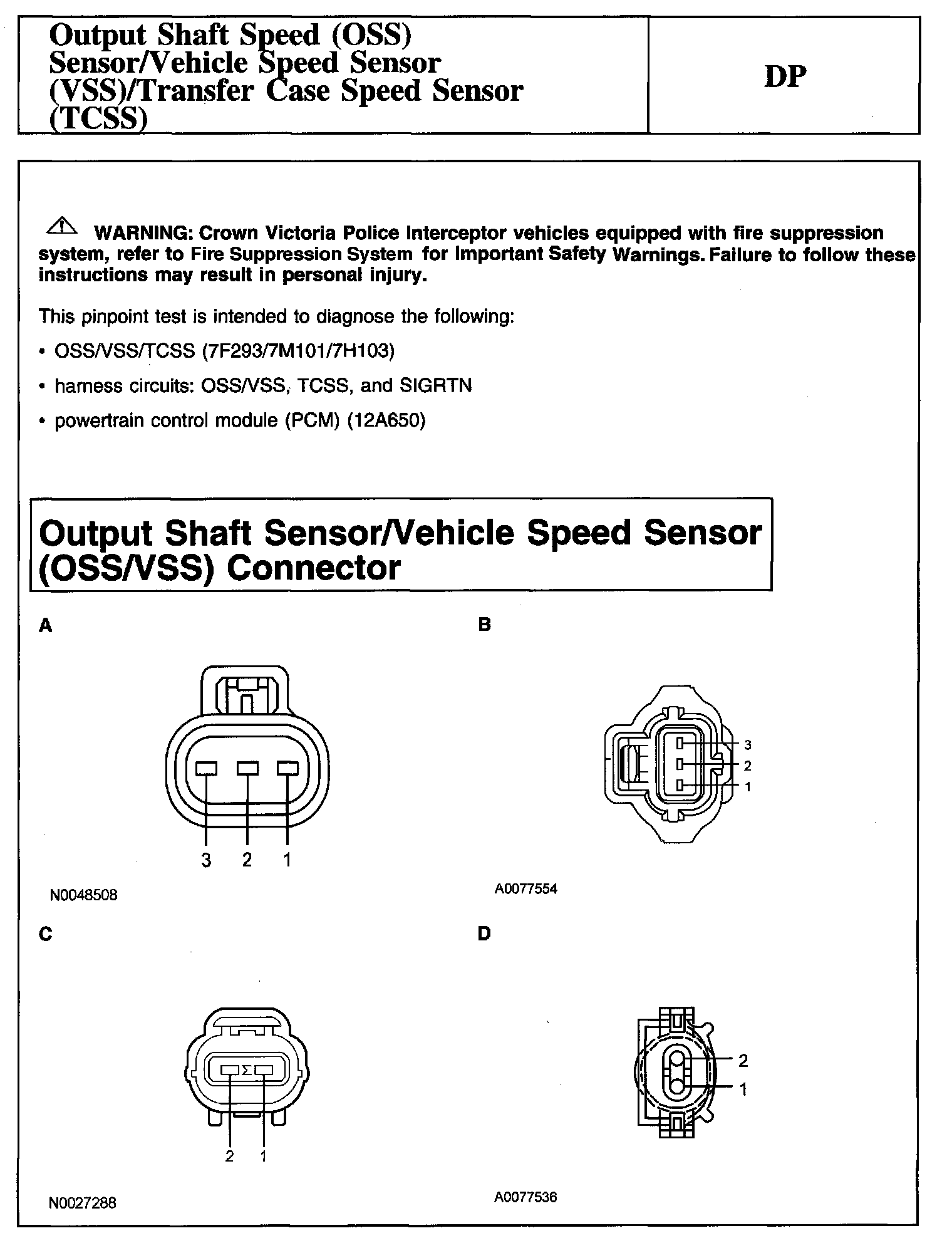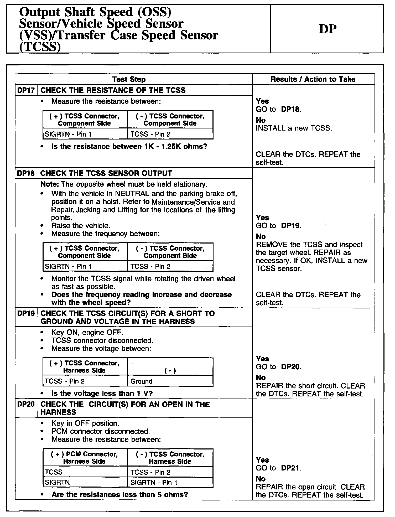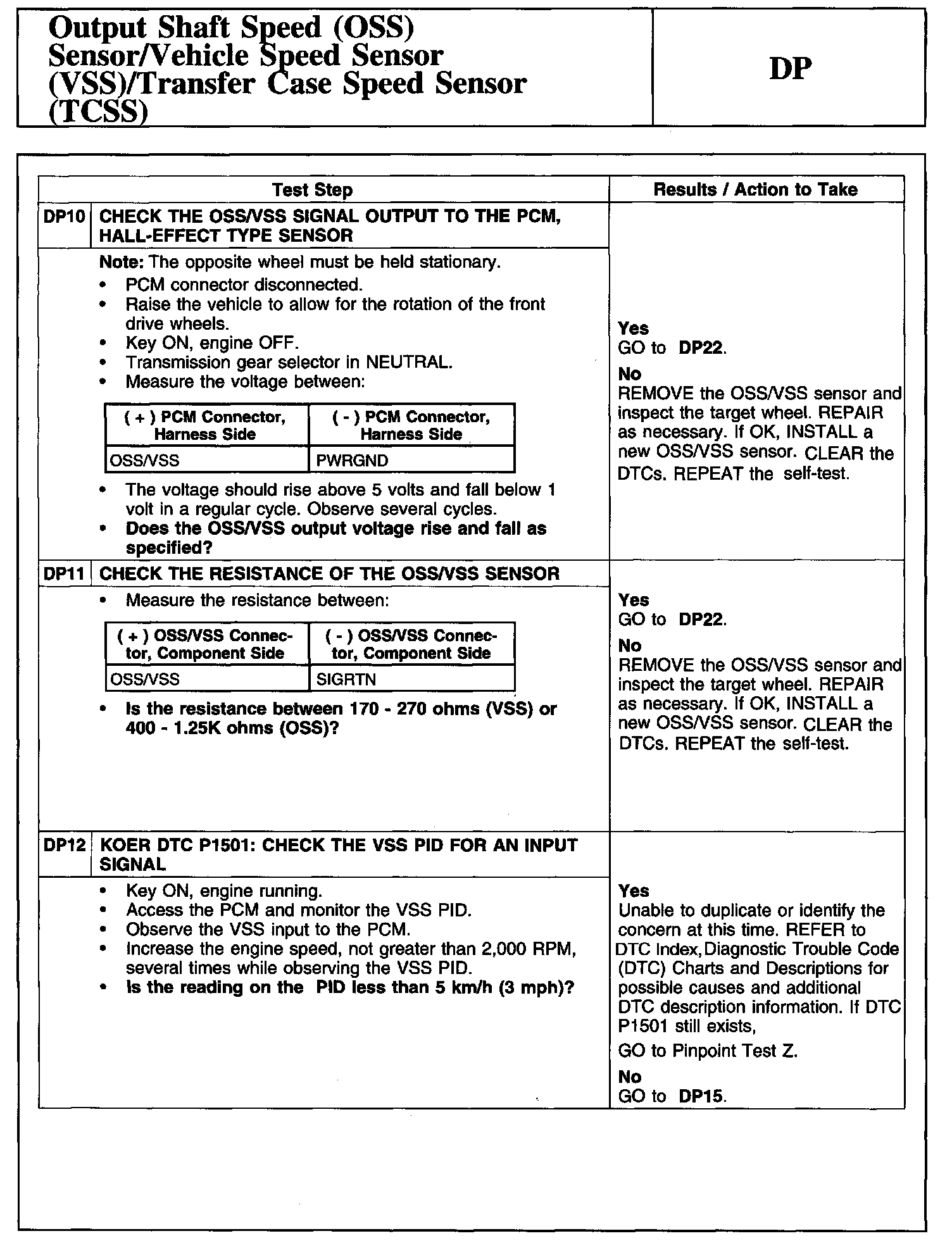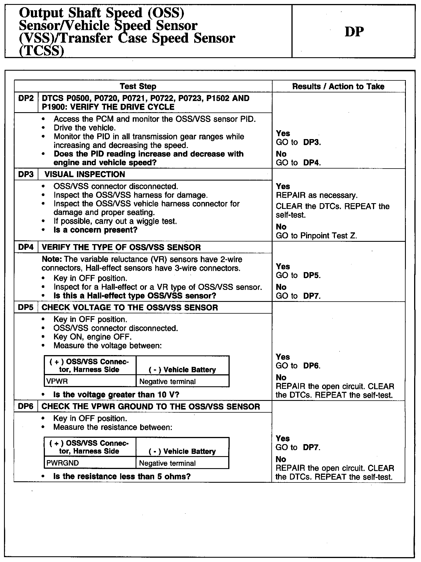 Tests DP: Output Shaft Speed (OSS) Sensor/Vehicle Speed Sensor (VSS)/Transfer Case Speed Sensor (TCSS)