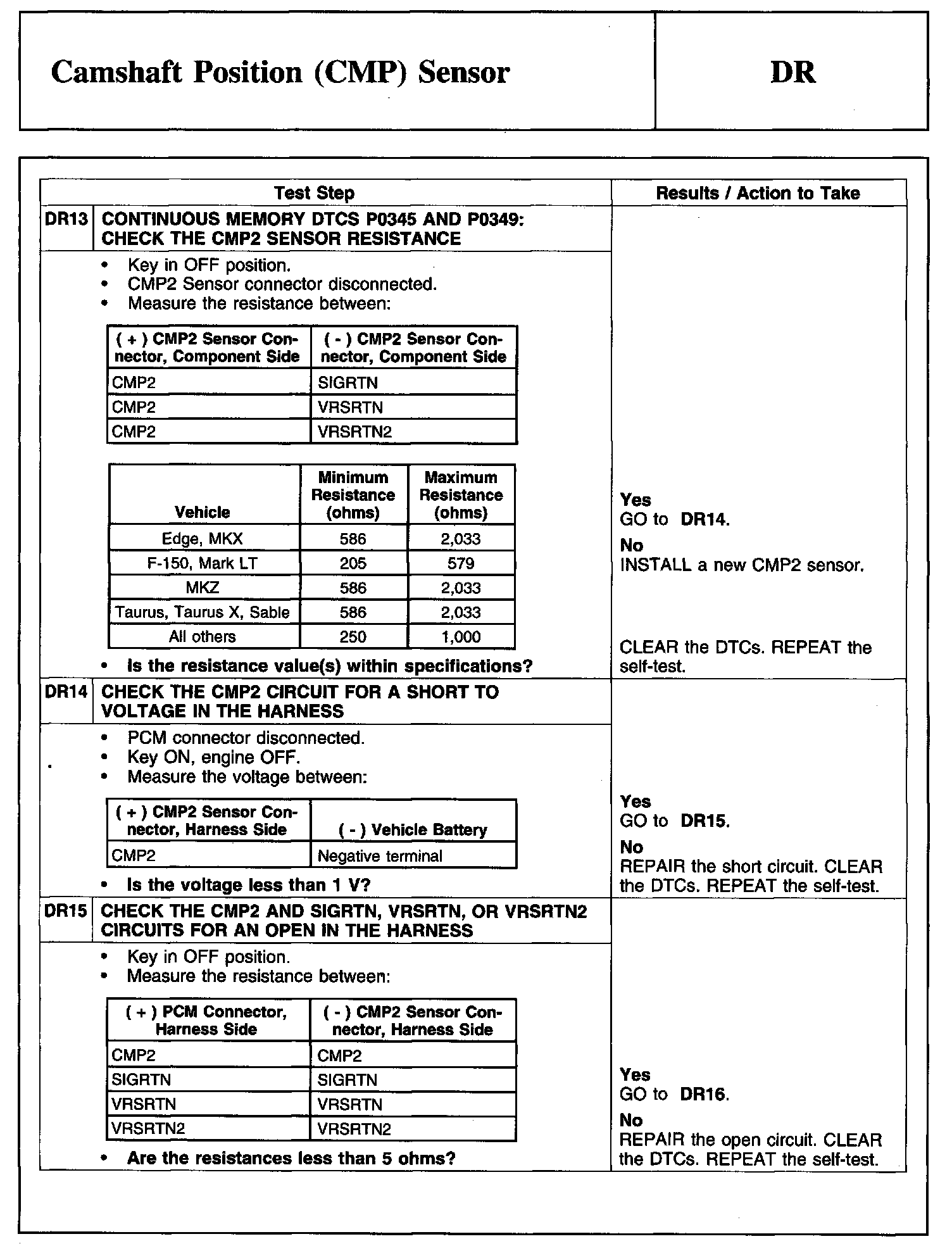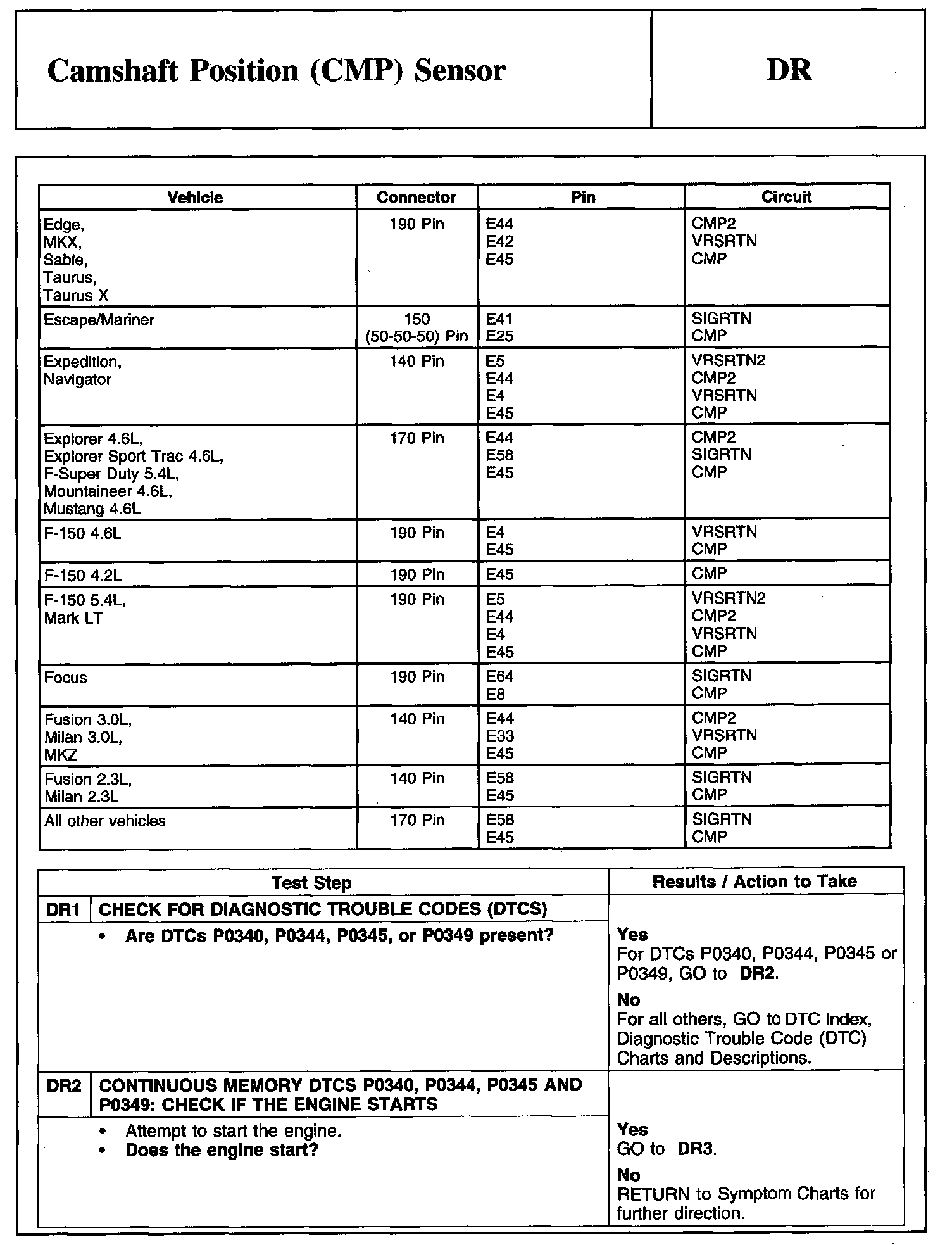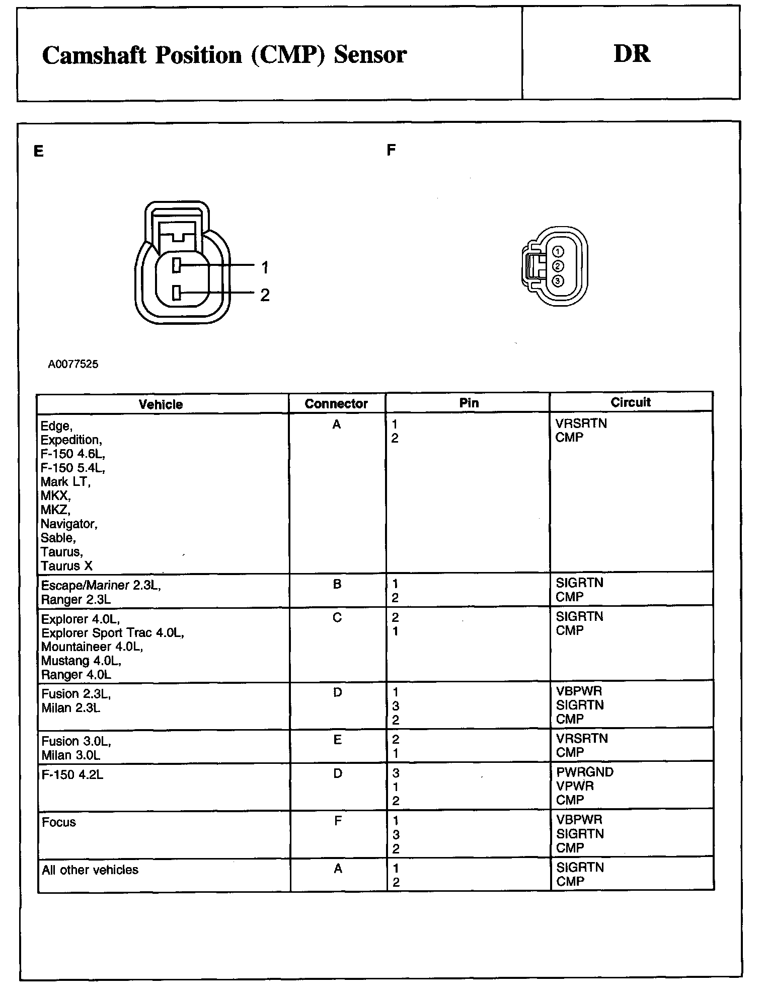 PINPOINT TEST DR: CAMSHAFT POSITION (CMP) SENSORDescription And Camshaft Position (CMP) Sensor Connector:
