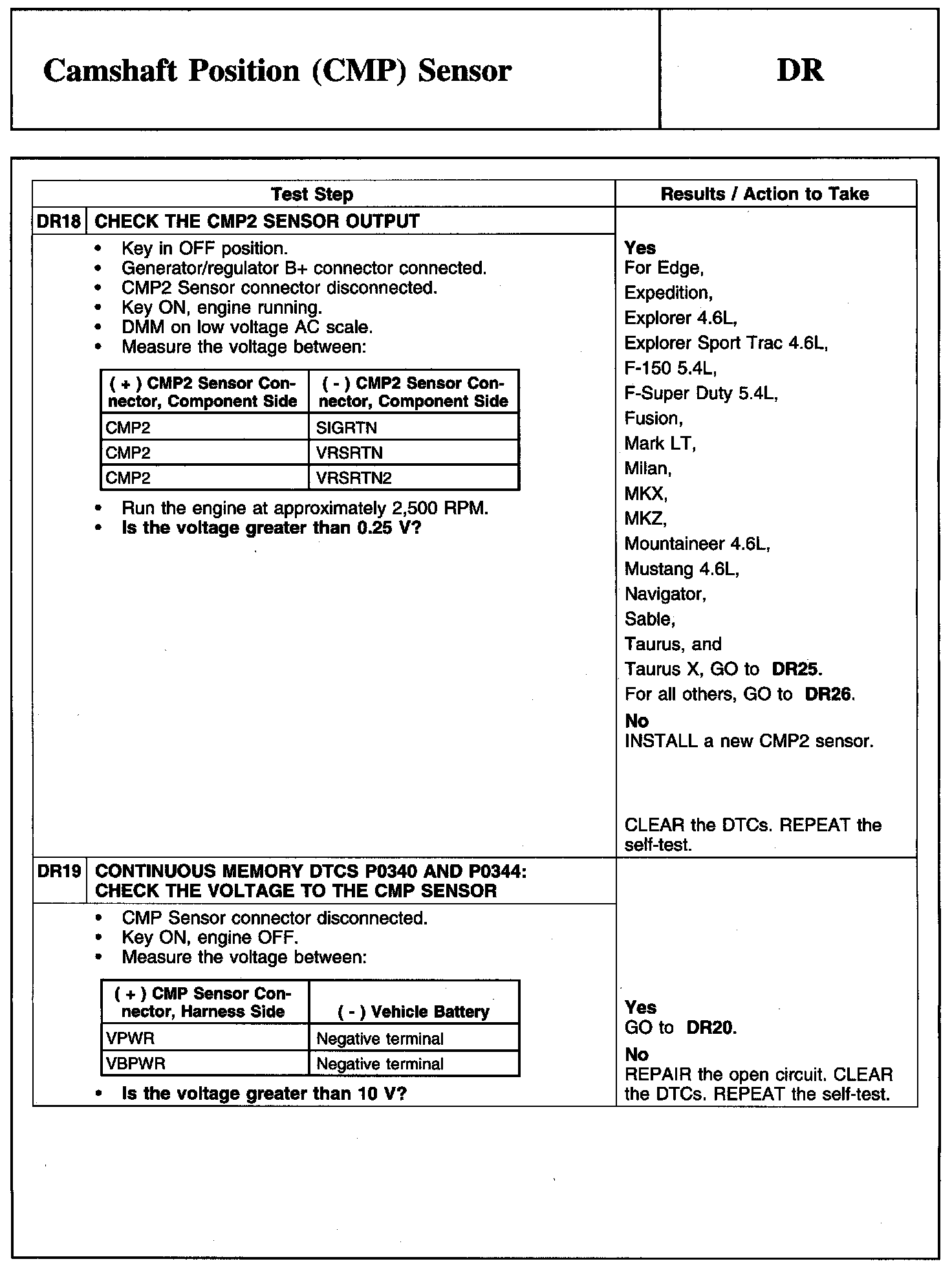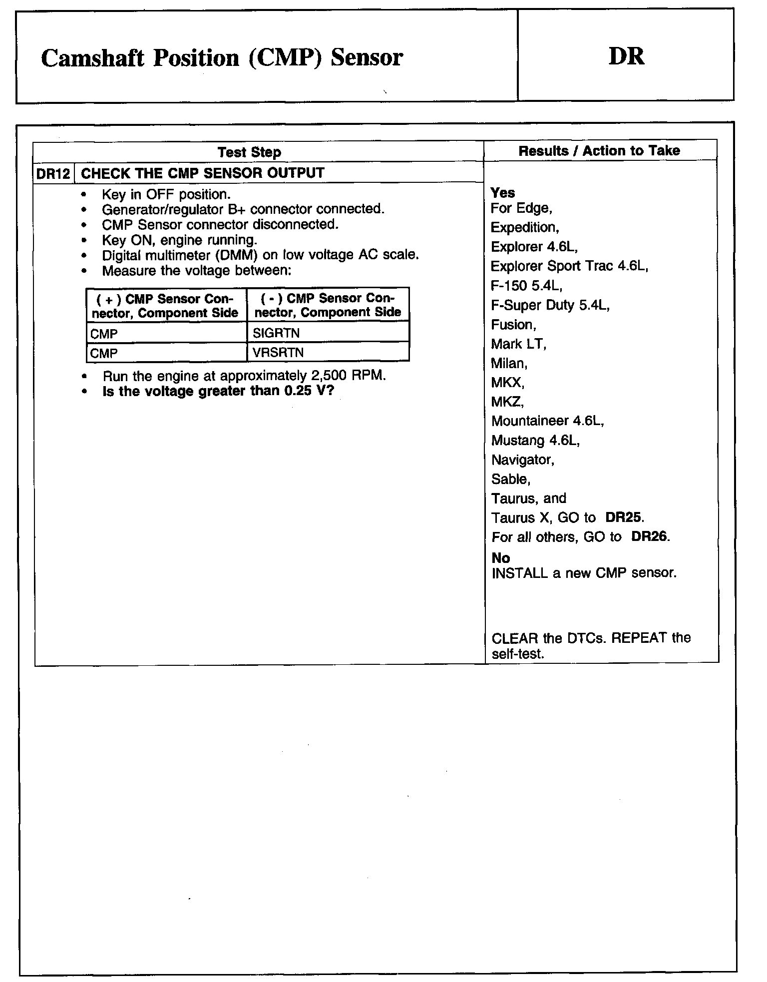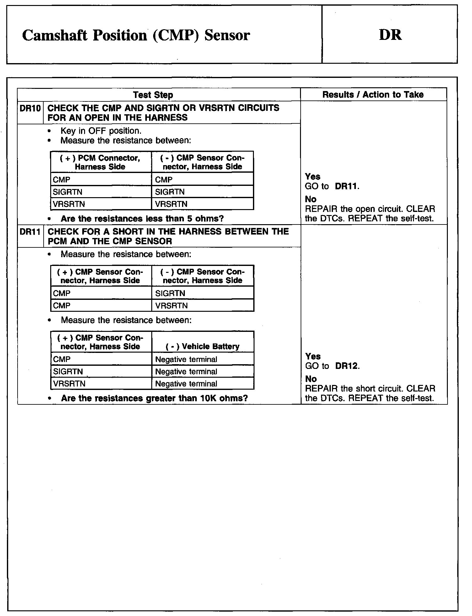 PINPOINT TEST DR: CAMSHAFT POSITION (CMP) SENSORDescription And Camshaft Position (CMP) Sensor Connector: