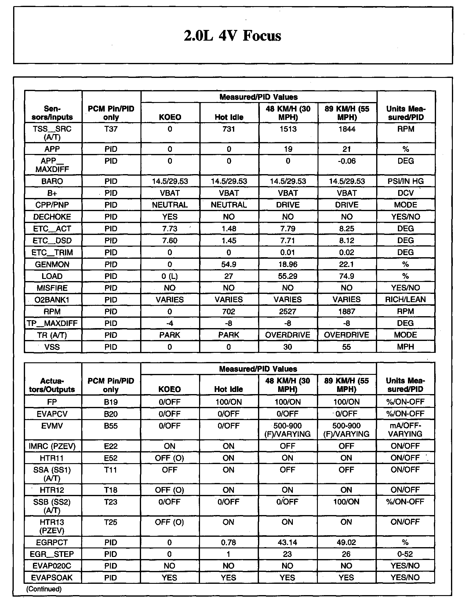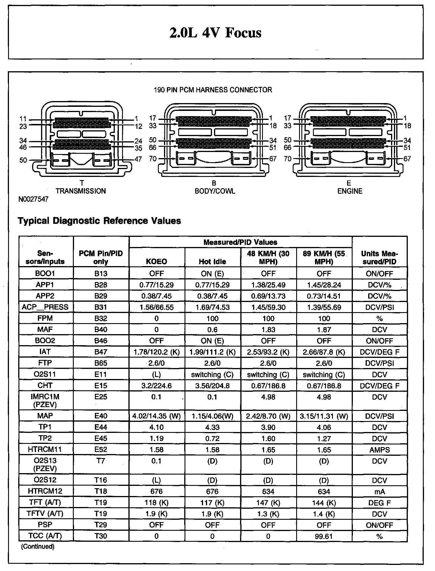 Home >> Ford >> 2008 >> Focus L4-2.0L >> Repair and Diagnosis >> Powertrain Management >> Computers and Control Systems >> Testing and Inspection >> Scan Tool Testing and Procedures >> Typical Diagnostic Reference Values
