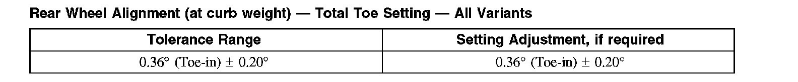 Rear Wheel Alignment (at curb weight) - Total Toe Setting - All Variants