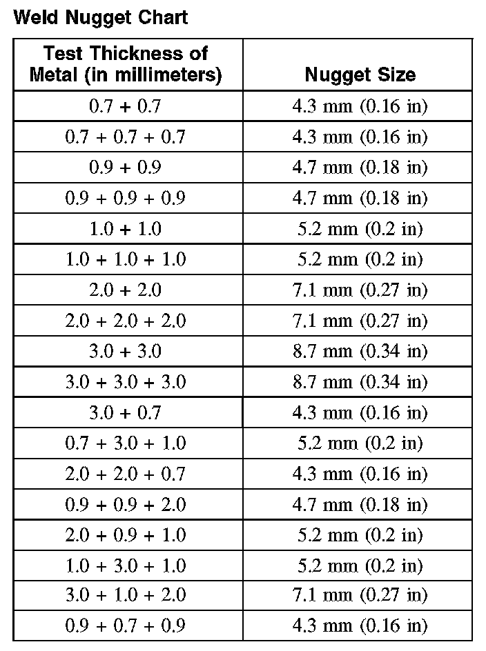 Weld Nugget Chart: