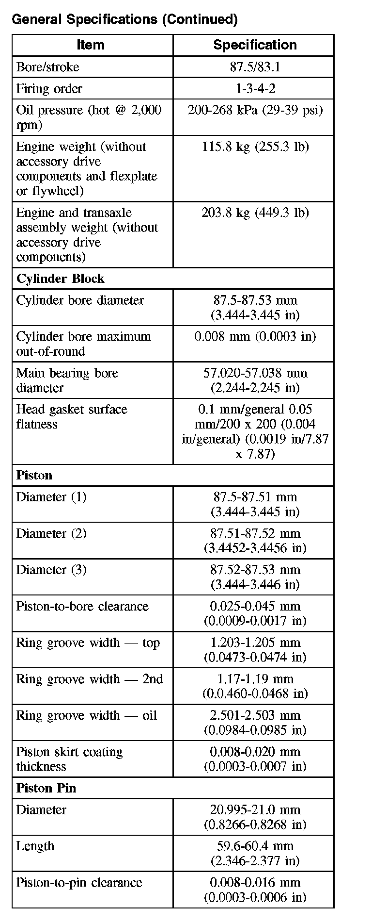 General Specifications (Part 2):
