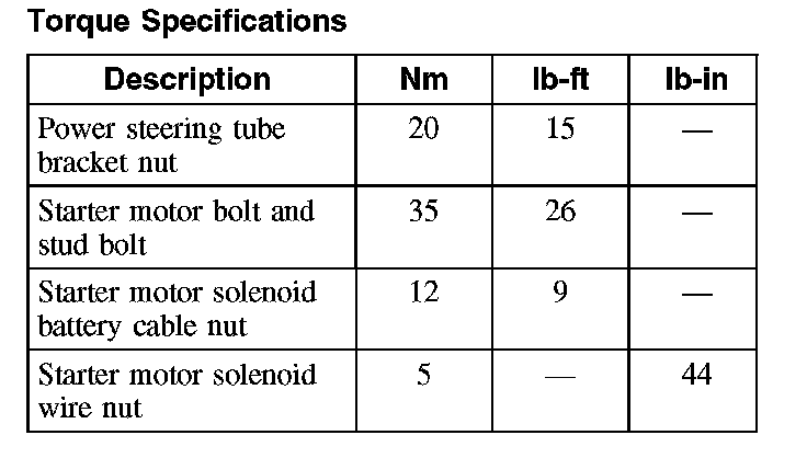 Torque Specifications: