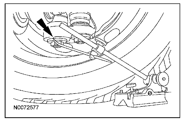 1. Measure the distance between the flat level surface and center of the lower arm inboard cam bolt (measurement A).