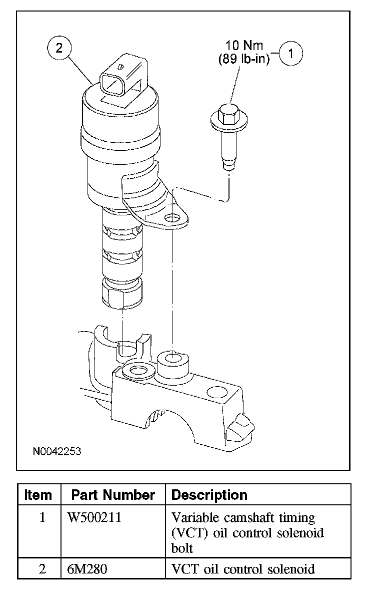 VARIABLE CAMSHAFT TIMING (VCT) OIL CONTROL SOLENOIDRemoval and Installation