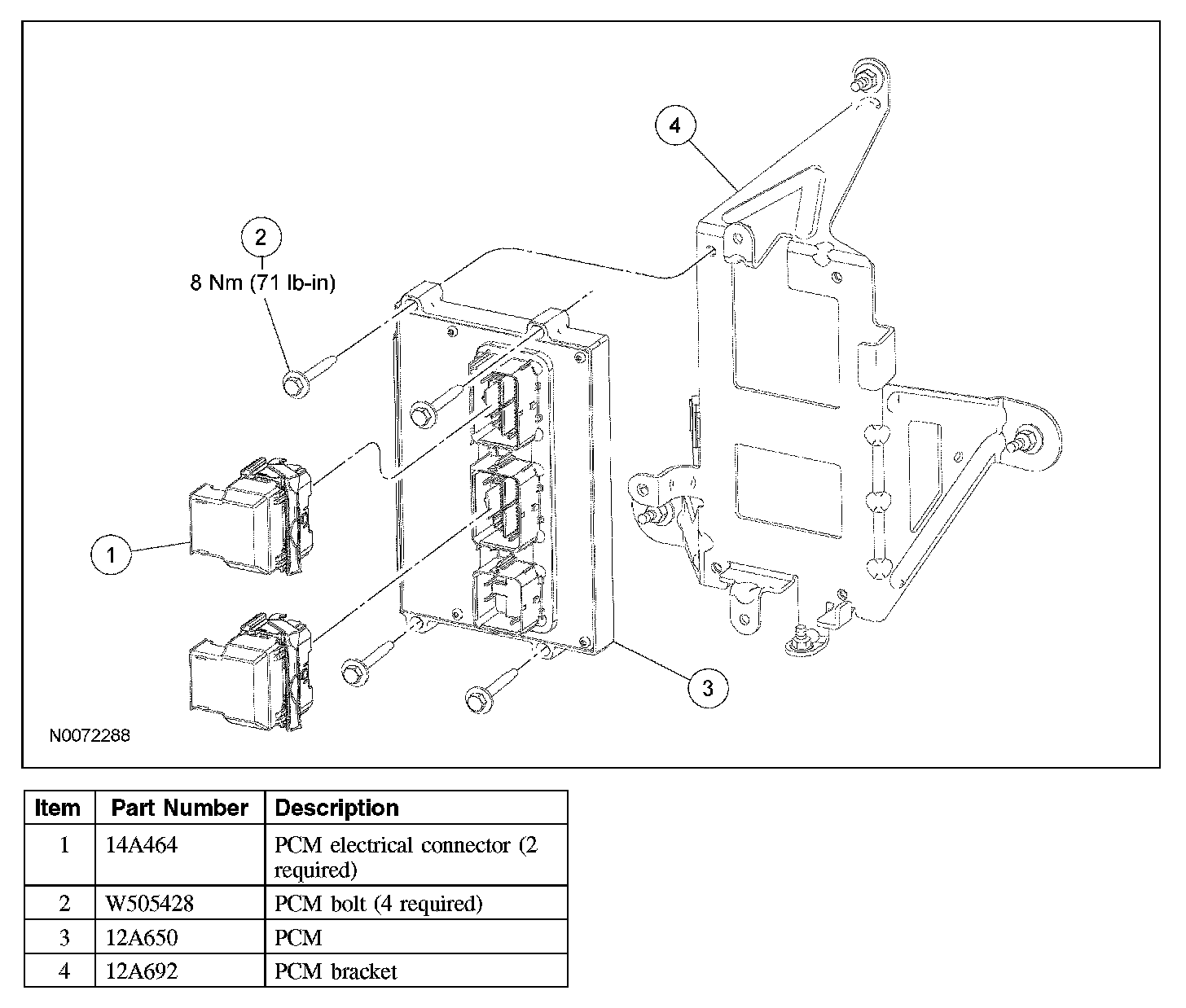 1. Install the PCM and the 4 bolts.