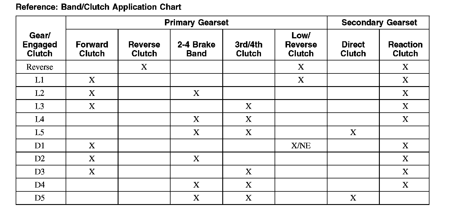 Reference: Band/Clutch Application Chart: