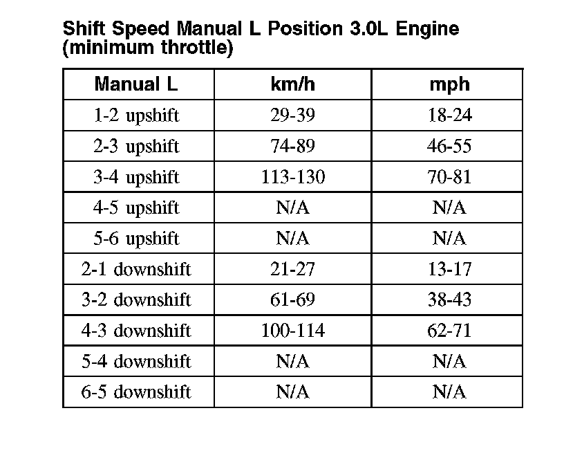 Shift Speed Manual L Position 3.0L Engine (minimum throttle)