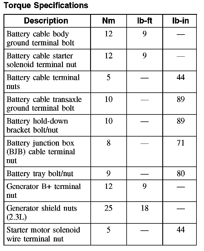 Torque Specifications: