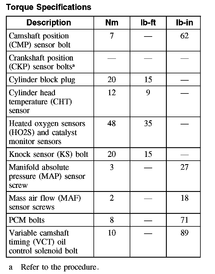 Torque Specifications: