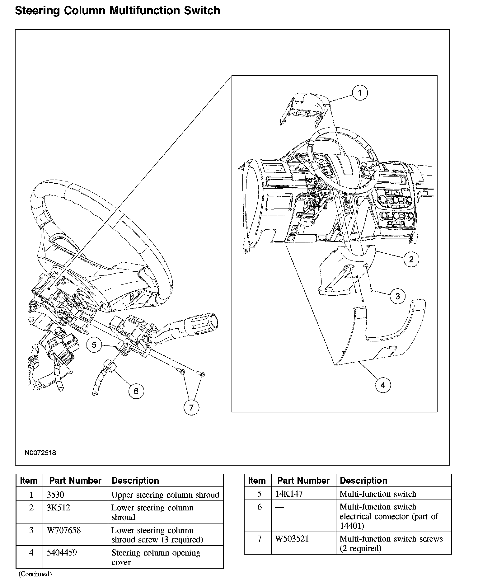 Steering Column Multifunction SwitchSteering Column Malfunction Switch: