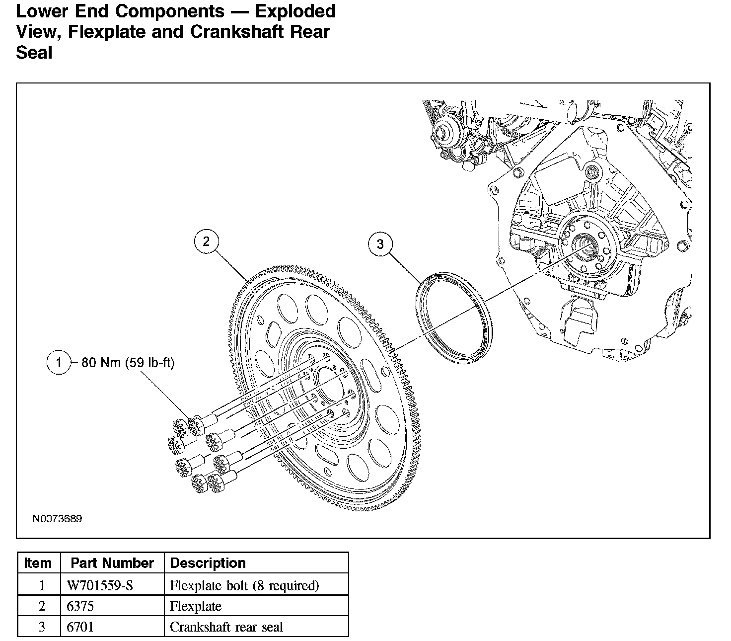 Lower End Components - Exploded View, Flexplate and Crankshaft Rear Seal