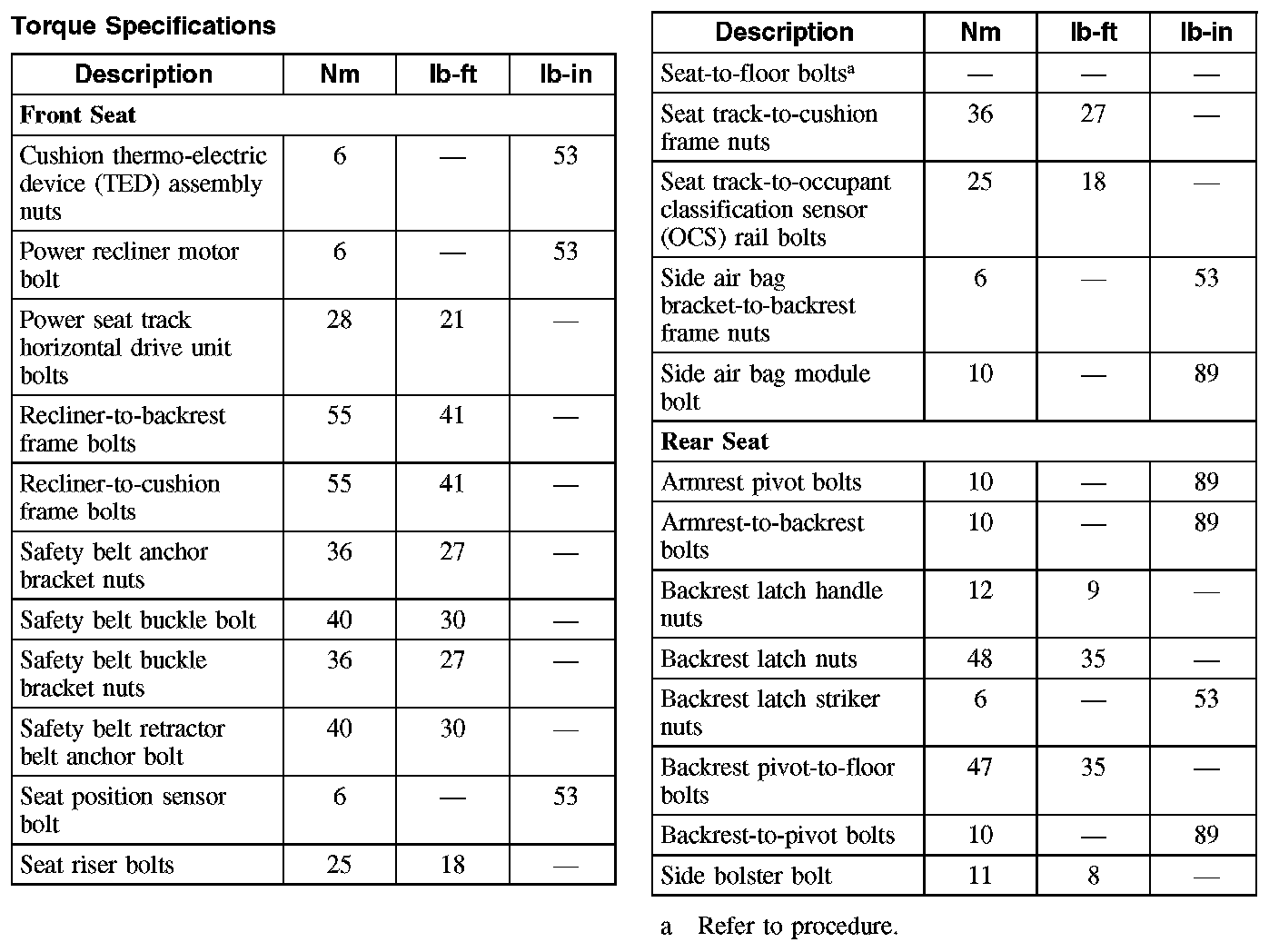 Torque Specifications: