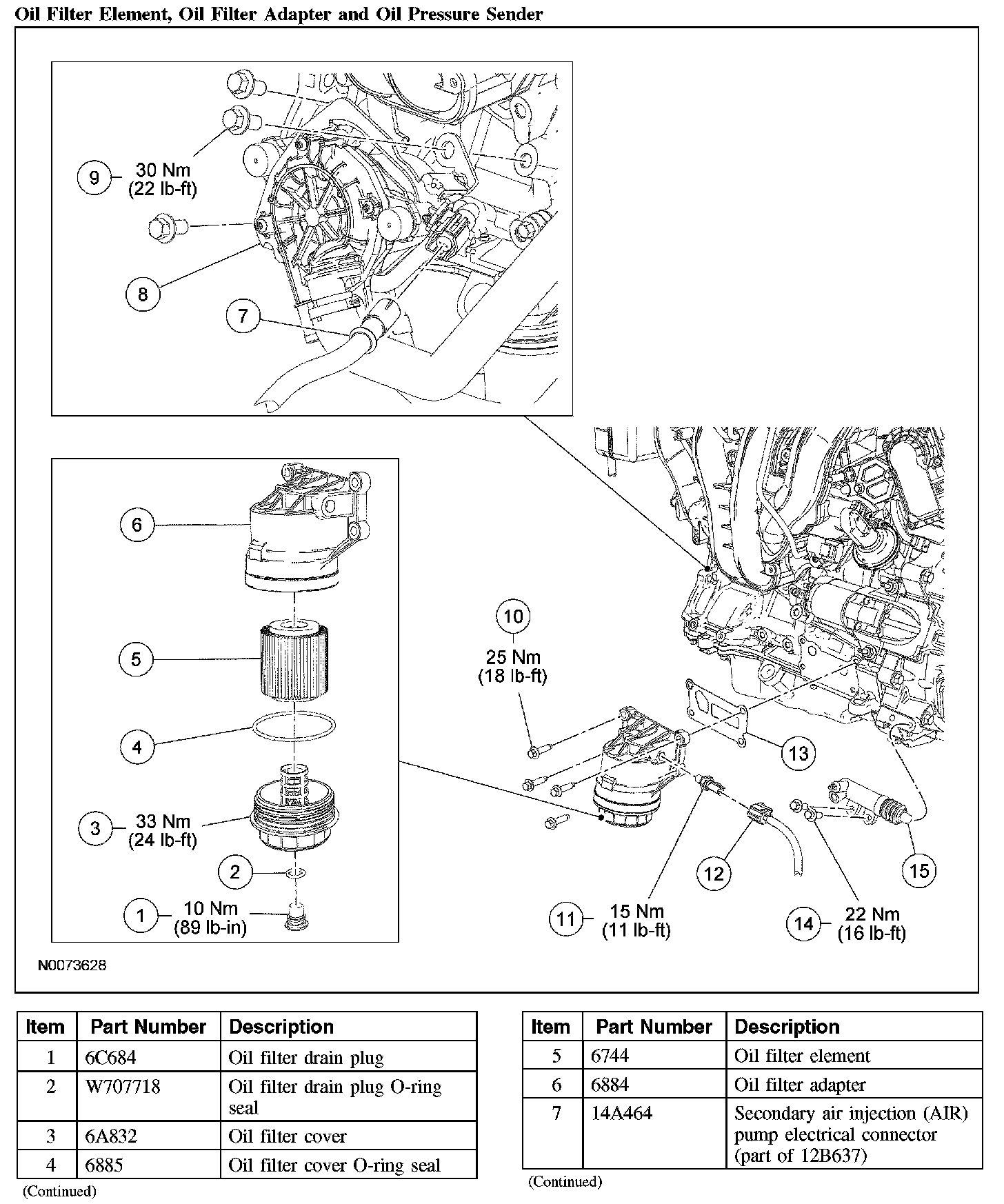 Oil Filter Element, Oil Filter Adapter and Oil Pressure Sender (Part 2):