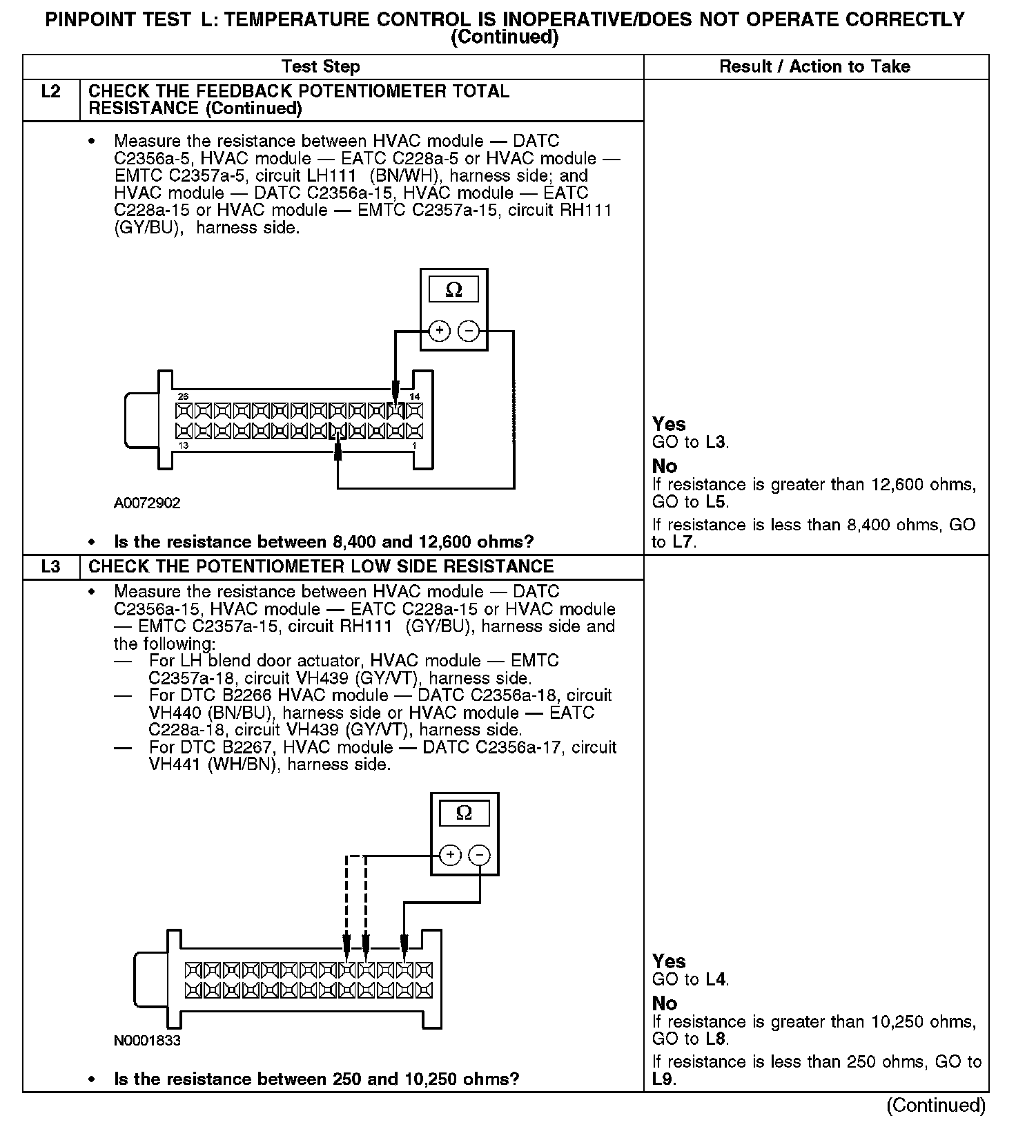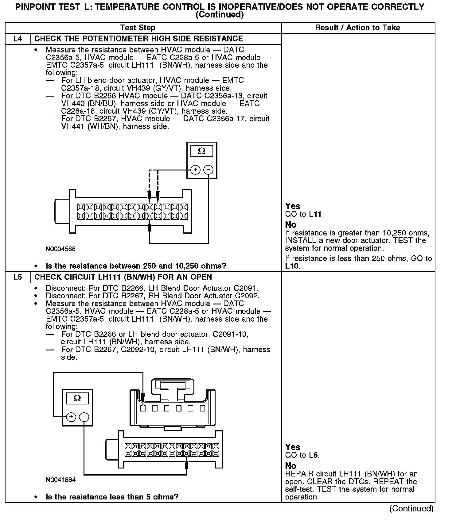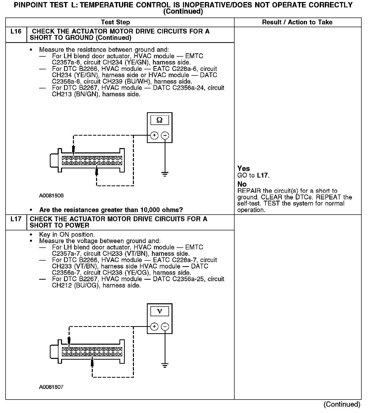 Home >> Ford >> 2008 >> Fusion FWD L4-2.3L >> Repair and Diagnosis >> Heating and Air Conditioning >> Testing and Inspection >> Pinpoint Tests >> Test L: Temperature Control Is Inoperative/Does Not Operate Correctly