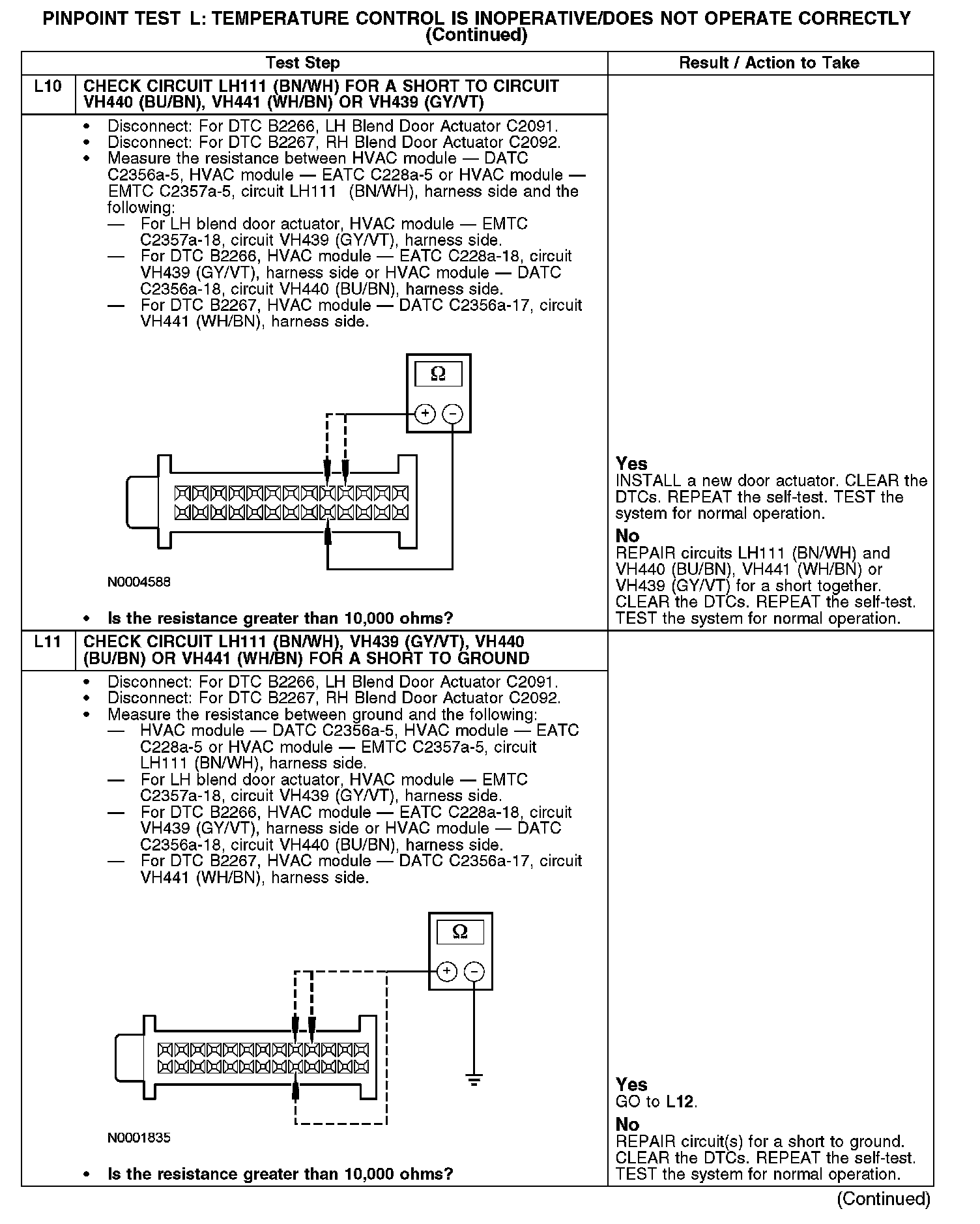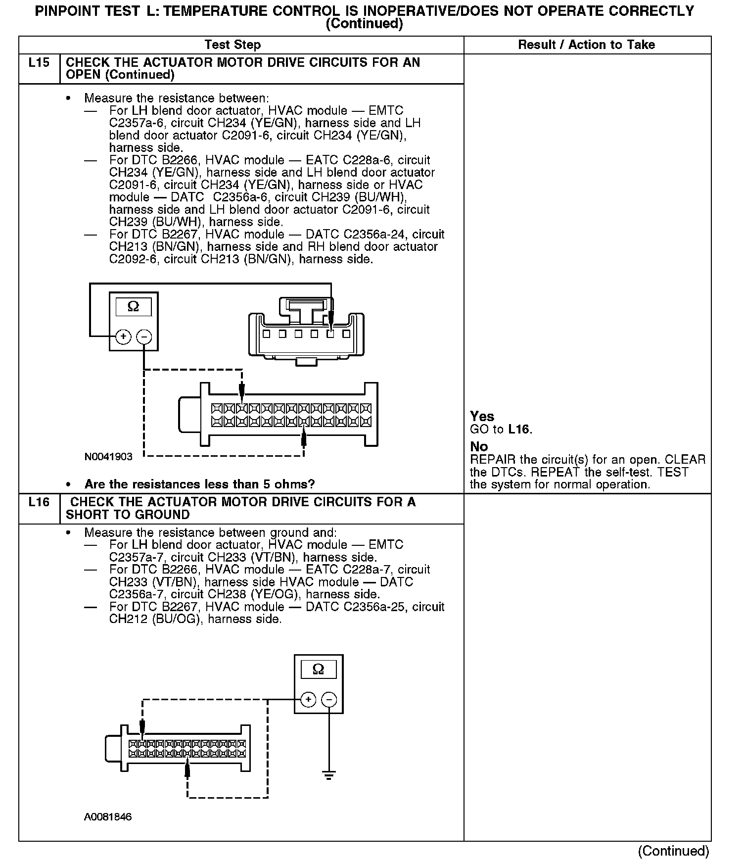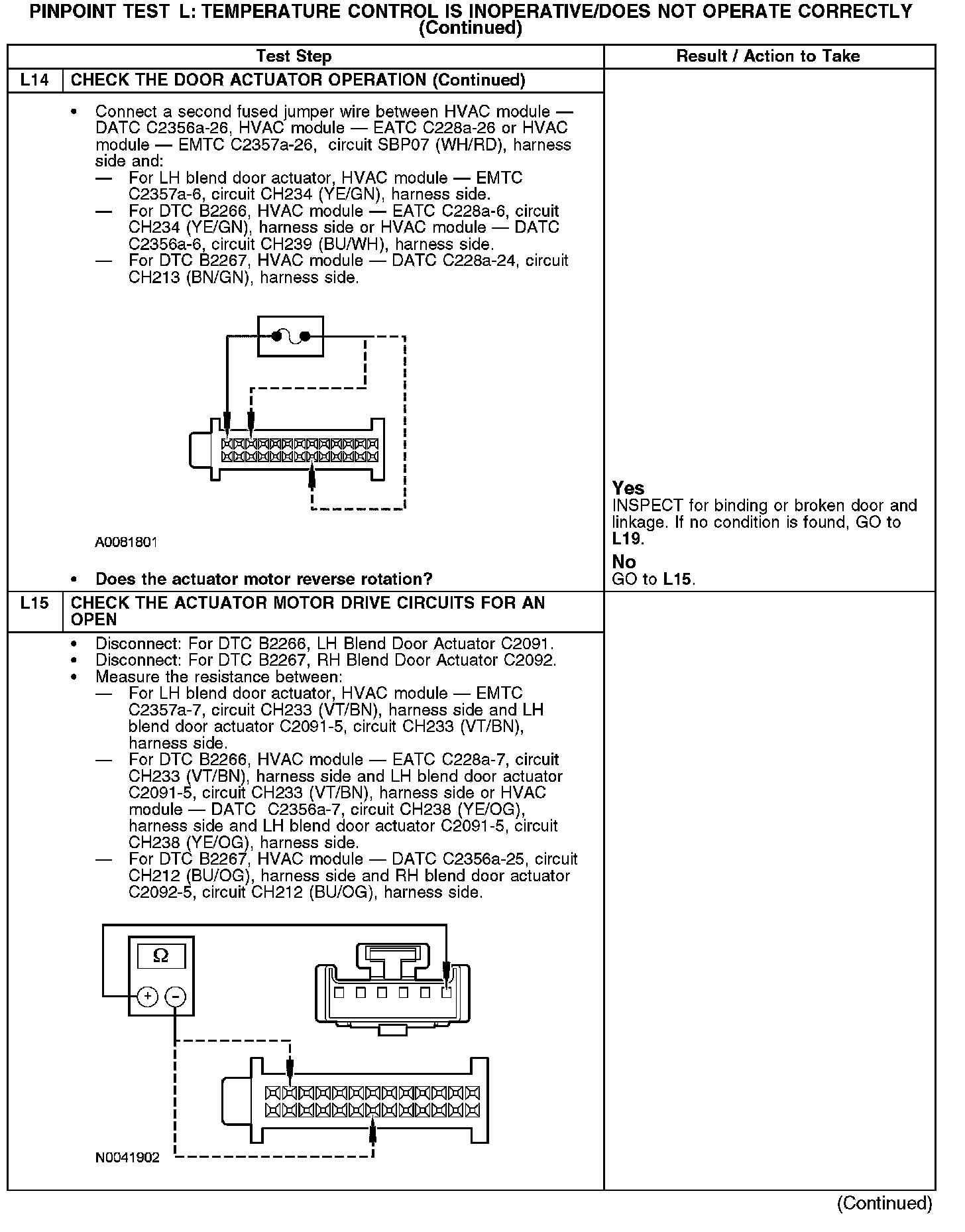 PINPOINT TEST L: TEMPERATURE CONTROL IS INOPERATIVE/DOES NOT OPERATE CORRECTLY