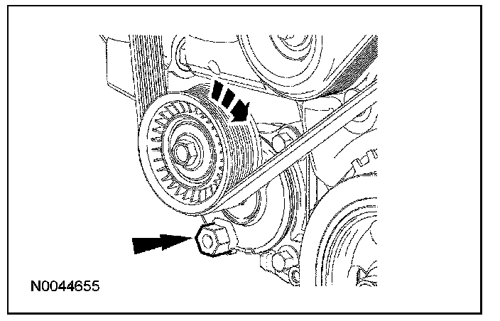 4. Using the hex feature, rotate the accessory drive belt tensioner clockwise and remove the accessory drive belt from the coolant pump pulley.