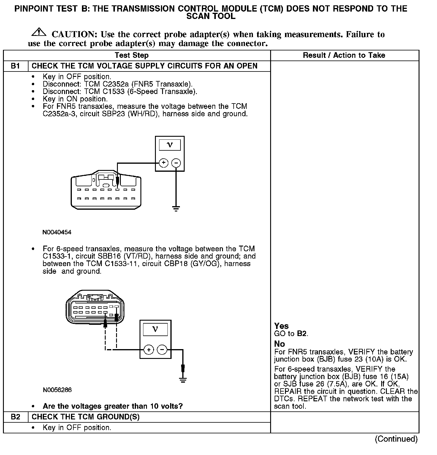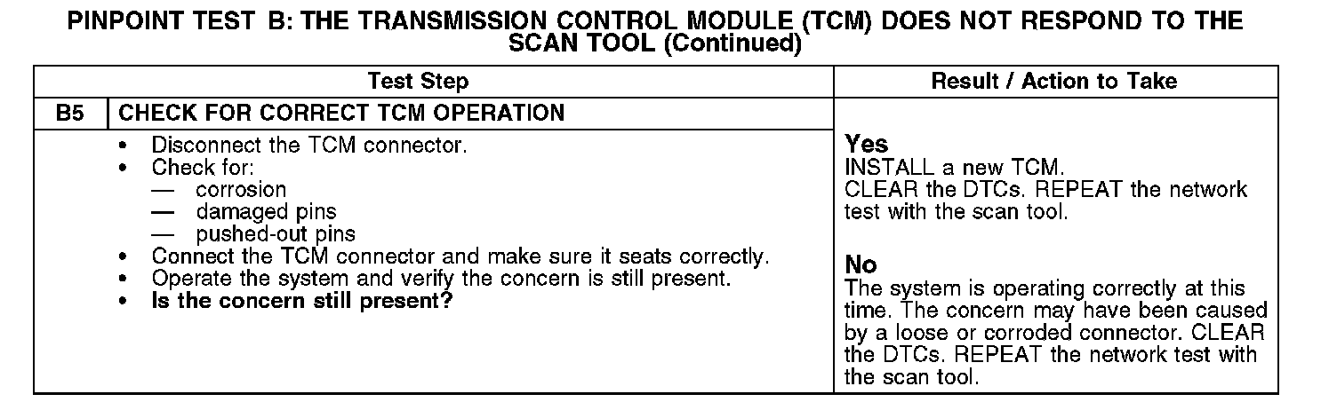 PINPOINT TEST B: THE TRANSMISSION CONTROL MODULE (TCM) DOES NOT RESPOND TO THE SCAN TOOL