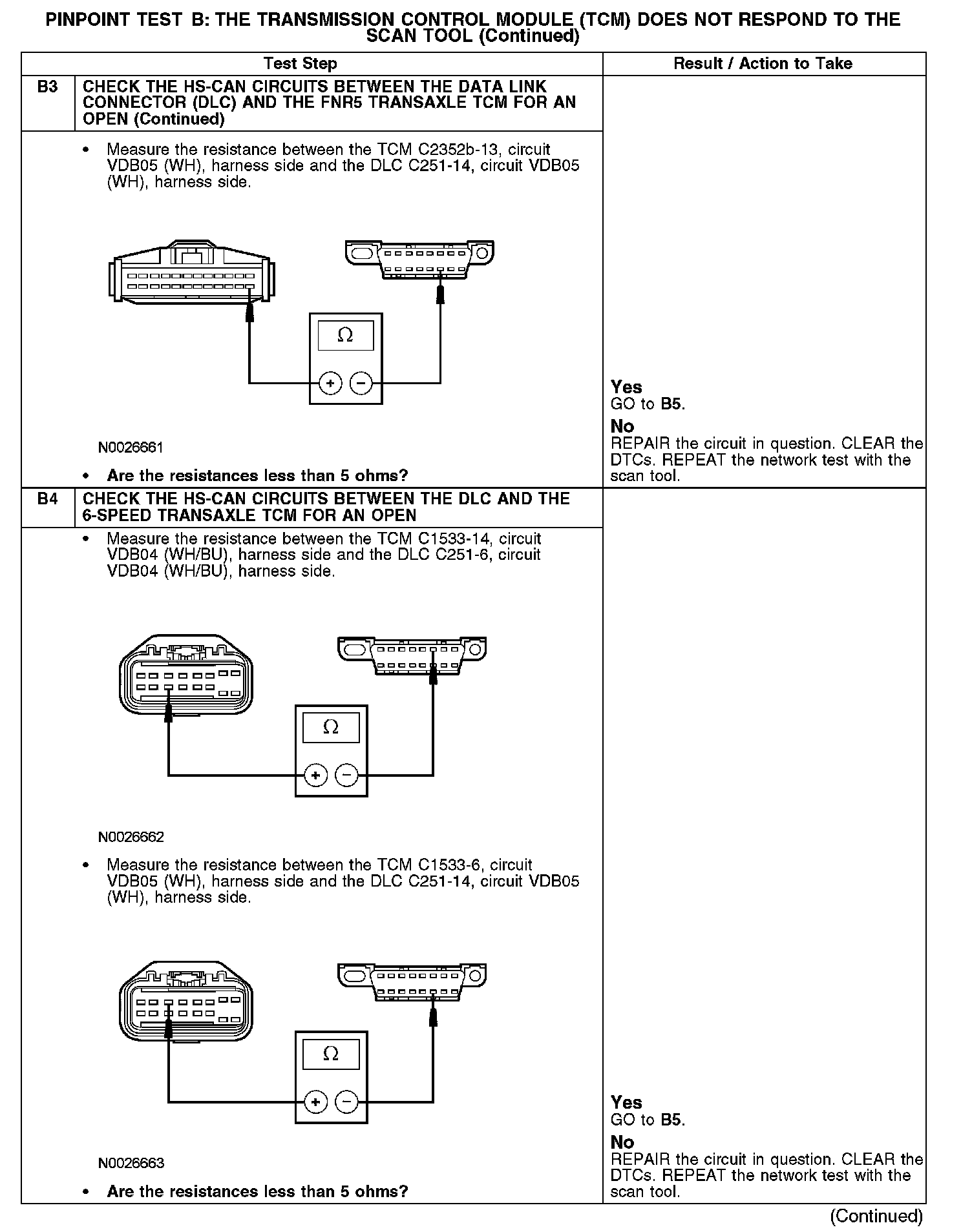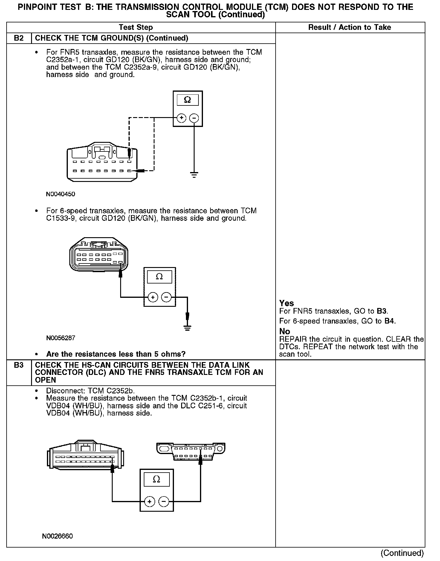 Home >> Ford >> 2008 >> Fusion FWD L4-2.3L >> Repair and Diagnosis >> Powertrain Management >> Computers and Control Systems >> Information Bus >> Testing and Inspection >> Pinpoint Tests >> Test B: The Transmission Control Module (TCM) Does Not Respond To The Scan Tool