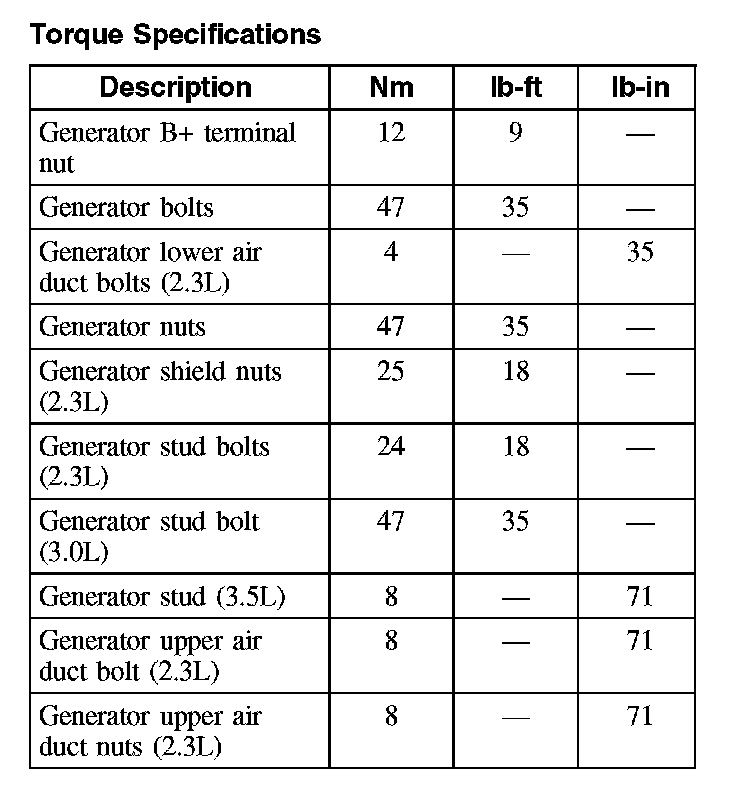 Torque Specifications: