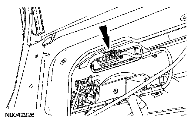 11. If equipped, disconnect the keyless entry keypad and door lock electrical connector and release from the bracket.
