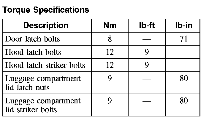 Torque Specifications: