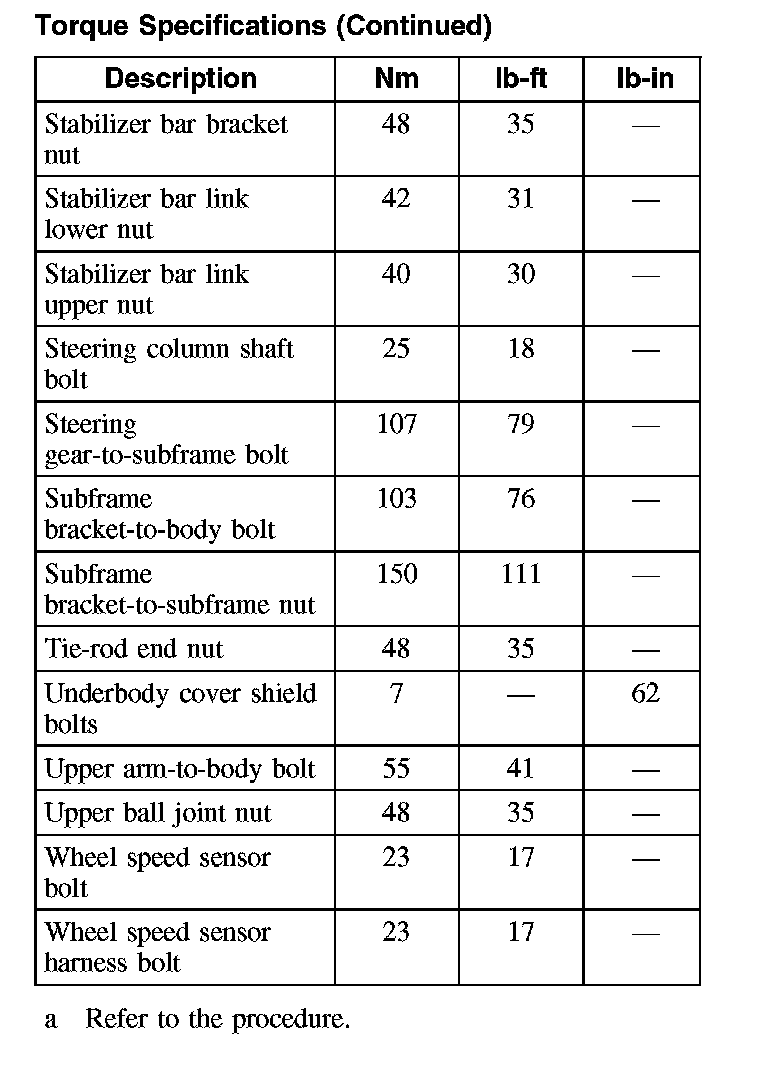 Torque Specifications (Part 2):
