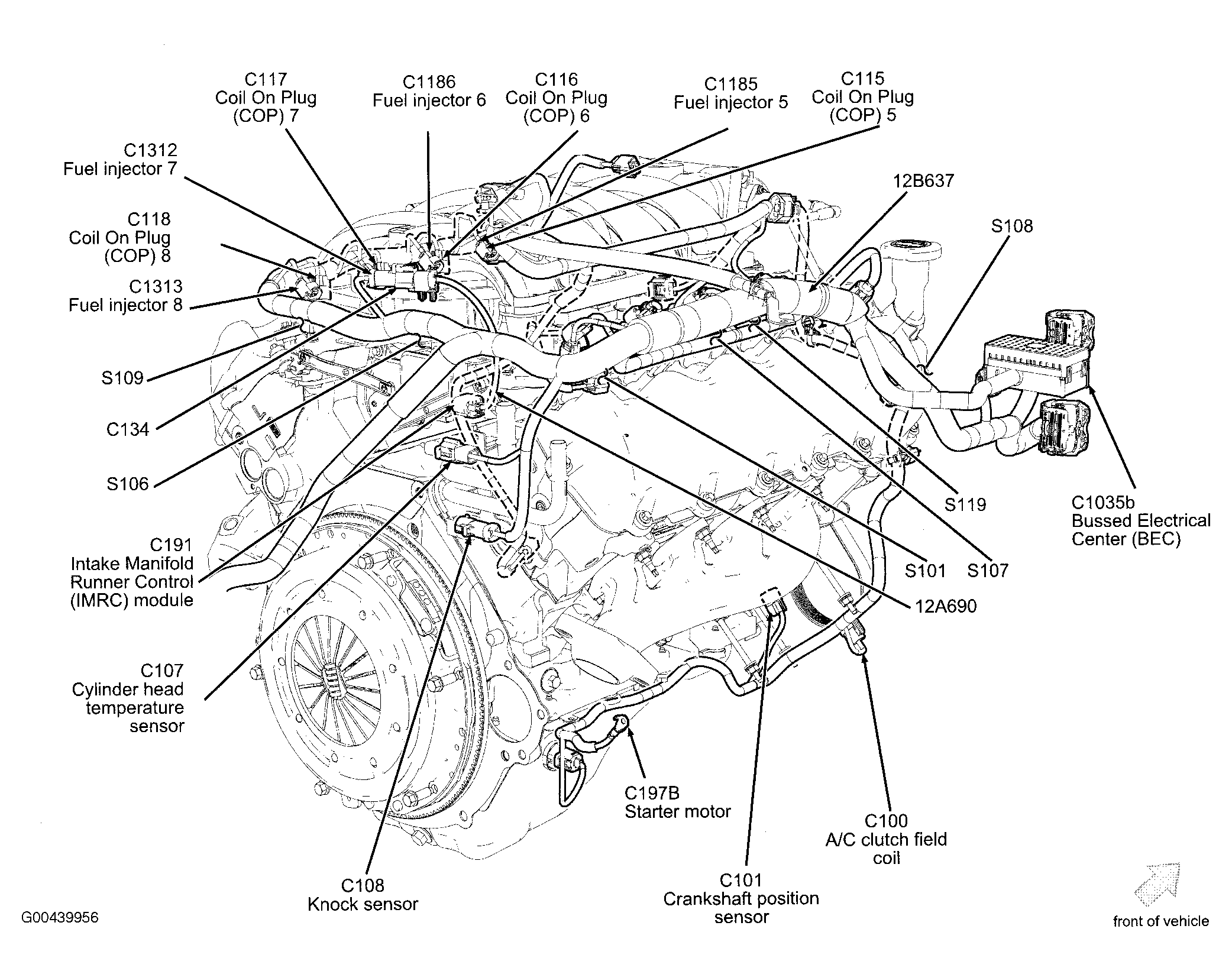 | EGR System Module (5.4L) | Top center of engine. See Figure. |