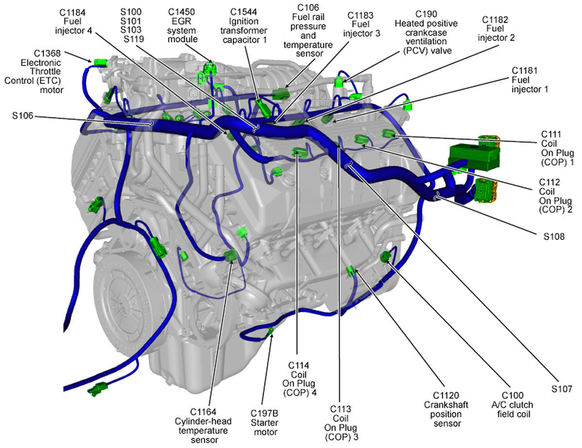 | Powertrain Control Module (PCM) | Right front of engine compartment. See Figure. |